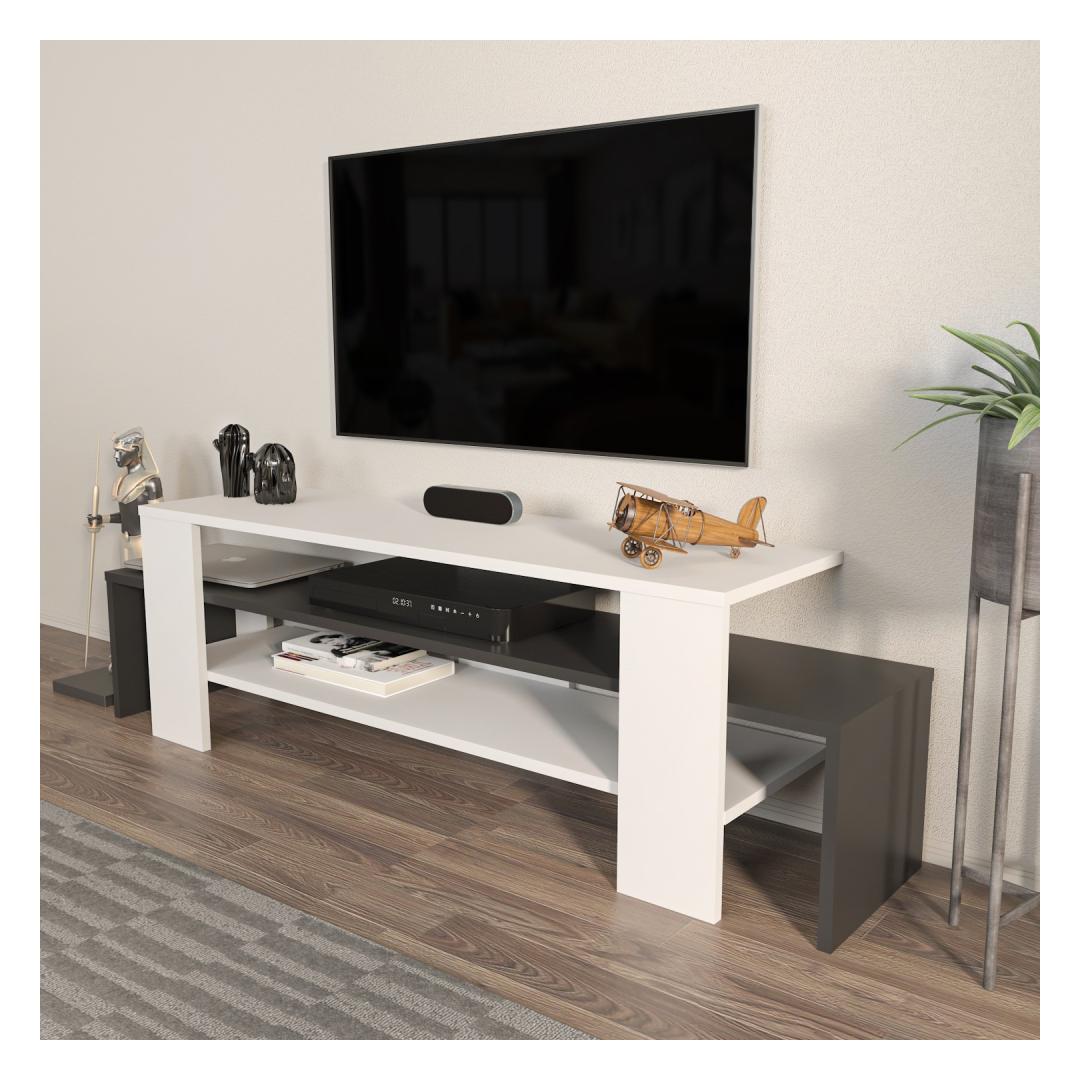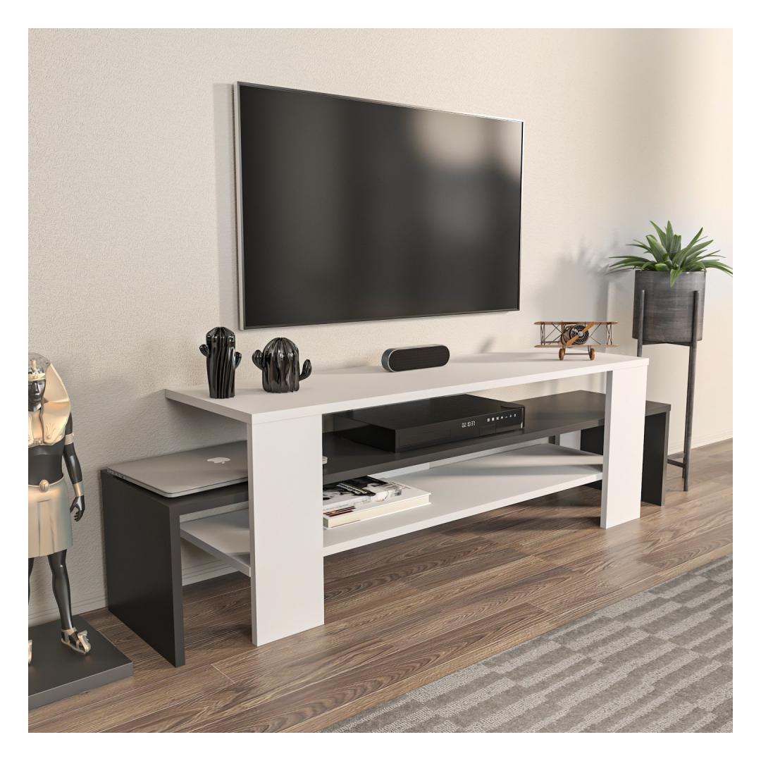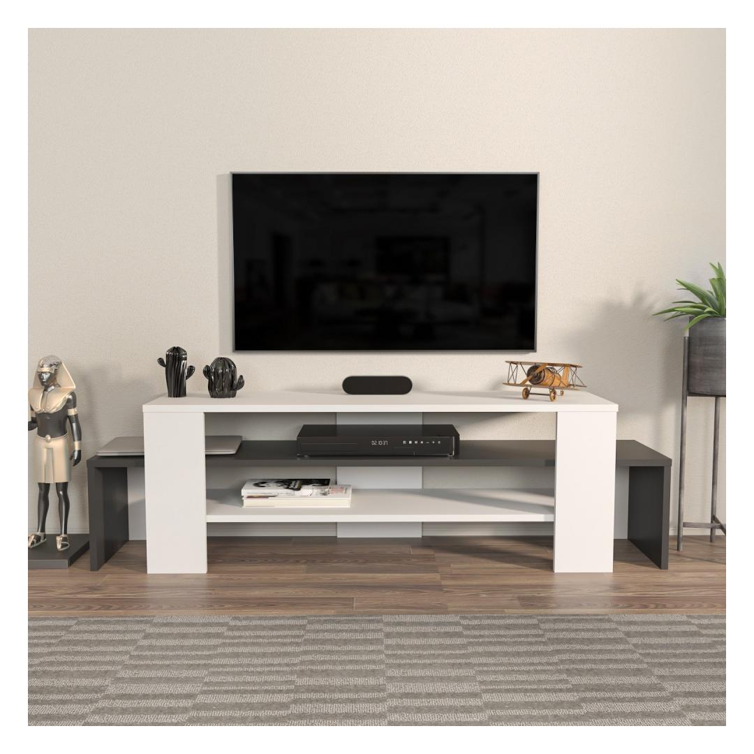 Tänu oma elegantsele ja modernsele disainile sobitub meie televiisoripult vaevata mis tahes interjööri stiiliga, lisades teie elutuppa rafineerituse. Valge ja antratsiidi värvi kombinatsioon loob visuaalselt silmatorkava kontrasti, mis püüab pilku ja täiendab teie olemasolevat mööblit sujuvalt.