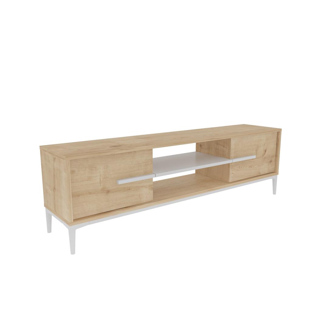 Valmistatud 100% melamiiniga kaetud puitlaastplaadist, on meie telerialus erakordselt vastupidav ja kauakestev. Selle tugev konstruktsioon tagab, et see suudab vaevata toetada teie televiisorit ja teisi meediaseadmeid, pakkudes teile usaldusväärset ja turvalist platvormi kõigi teie meelelahutusvajaduste jaoks.