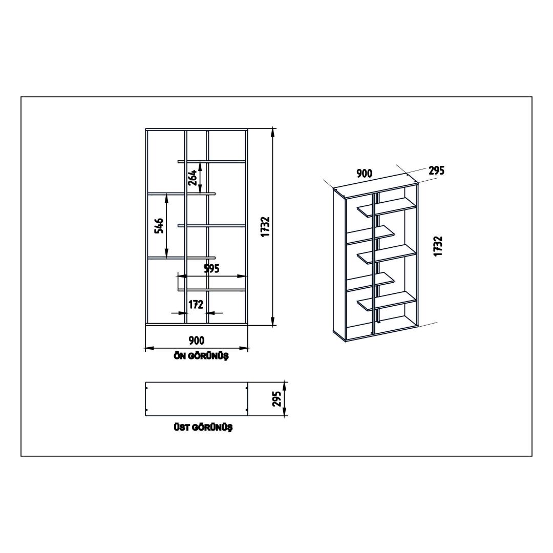• Raamaturiiuli suurus: Laius: 90cm, kõrgus: 173. 2cm, sügavus: 29. 5cm