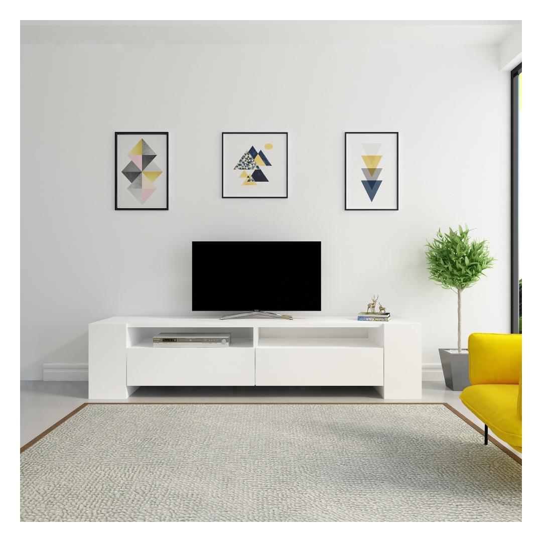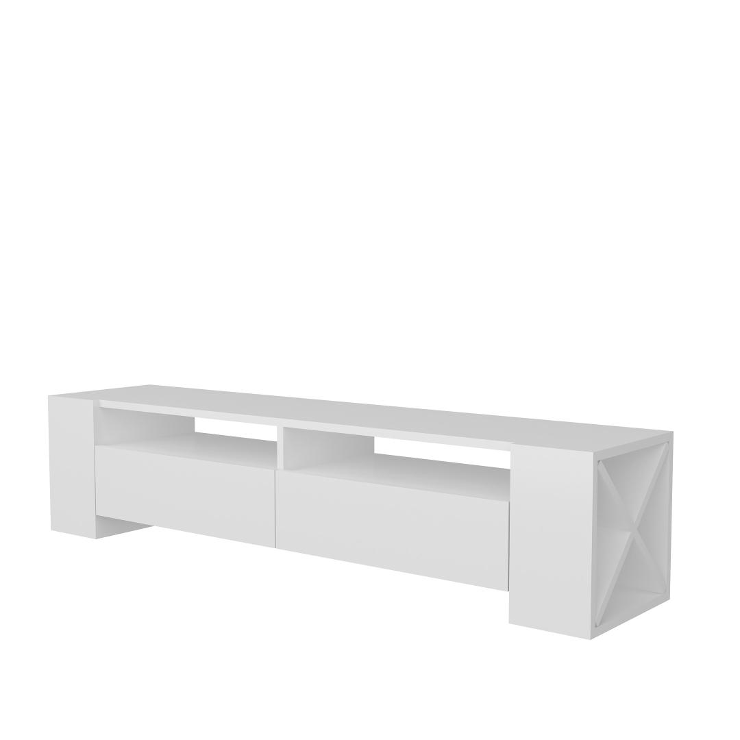 Telerialusel on elegantne valge värv, mis sulandub vaevata mis tahes sisustusstiiliga. Olenemata sellest, kas teie sisustus on minimalistlik, skandinaavialik või modernne, see televiisoripult sulandub sujuvalt teie eluruumi, lisades teie koju rafineeritust.