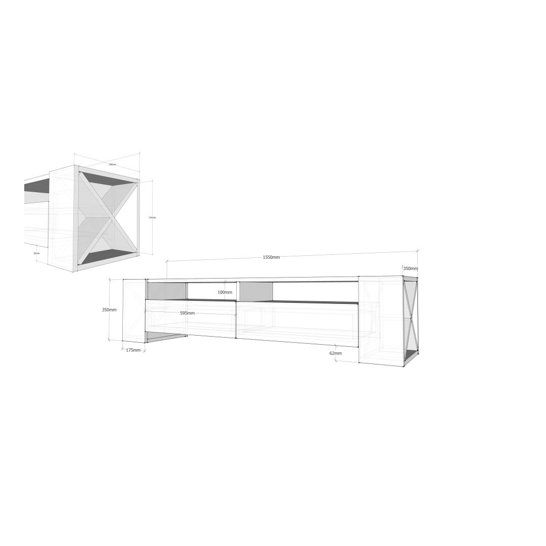 155 cm laiuse, 35 cm kõrguse ja 35 cm sügavuse telerikapi suurus pakub täiuslikke mõõtmeid, et mahutada enamik lameekraaniga telereid. 18 mm paksune melamiiniga kaetud puitlaastplaat tagab tugevuse ja vastupidavuse, pakkudes usaldusväärset tuge teie televiisorile.