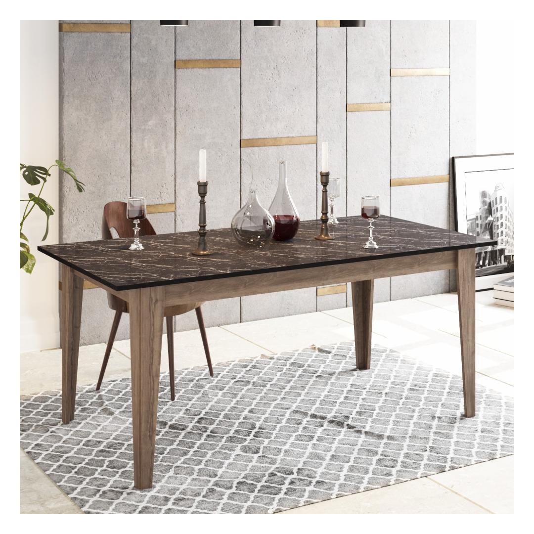Tõstke oma söögituba esile meie suurepärase söögilauaga, mis on loodud nii funktsionaalsuse kui ka elegantsi toomiseks teie koju. See 100% melamiiniga kaetud puitlaastplaadist valmistatud laud on valmistatud kestma, tagades aastatepikkused meeldejäävad söögid ja koosviibimised lähedastega.