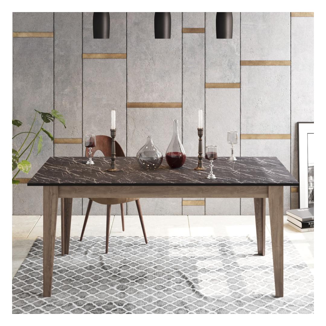 Pähklipuu ja musta värvi kombinatsioon annab sellele söögilauale kaasaegse ja rafineeritud välimuse. Antratsiitne täispuhas värv lisab elegantsi, samas kui moodne uudne disain lisab teie söögisaalile unikaalset elegantsi. See on statement-tükk, mis täiendab vaevata mis tahes interjööri stiili.