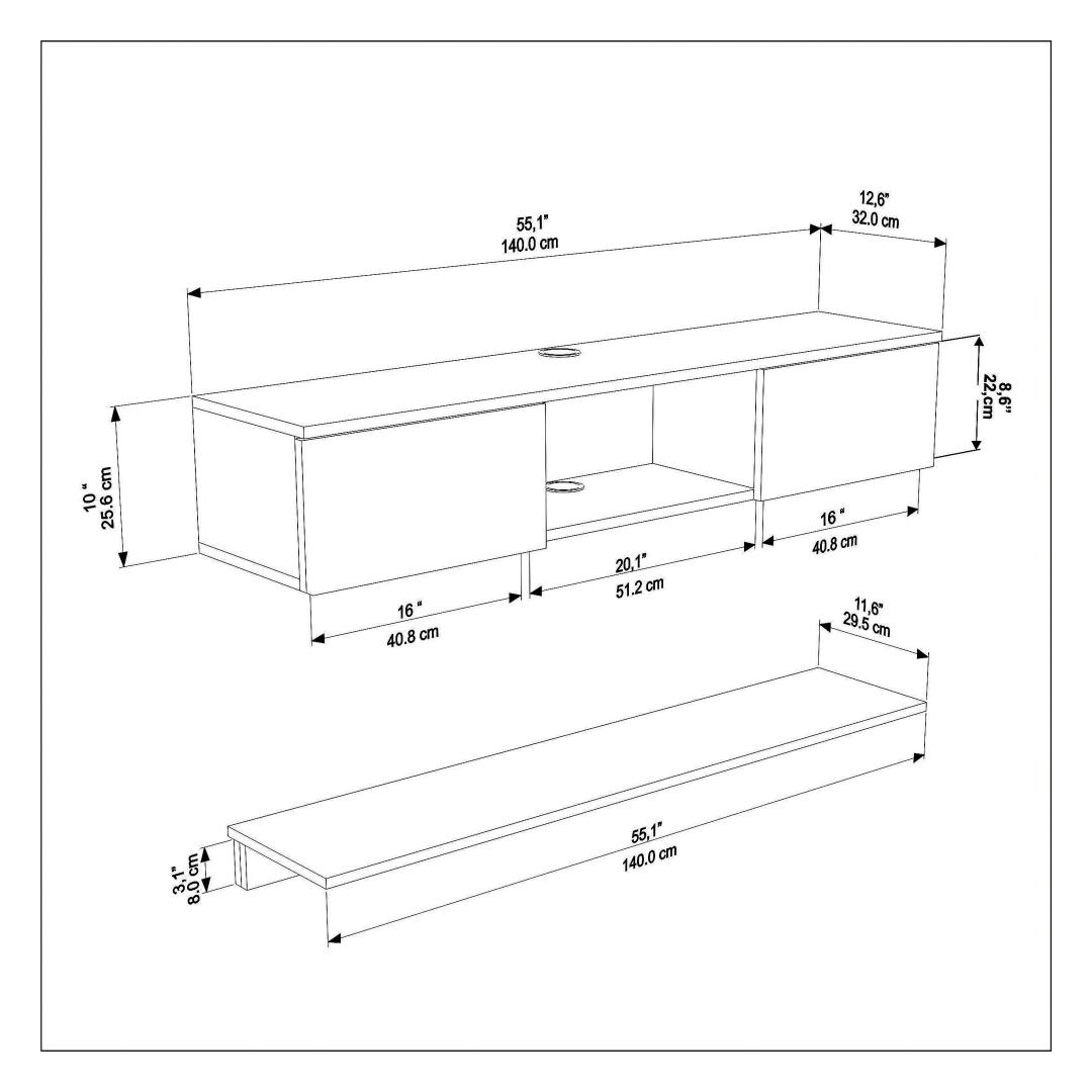 Piisavalt ruumi: 25,6 cm kõrguse ja 32 cm sügavusega pakub see telerialus palju ruumi teie meedia seadmete, DVD-de ja muu jaoks. Hoidke oma elutuba korras ja organiseerituna selle funktsionaalse ja stiilse eseme abil.