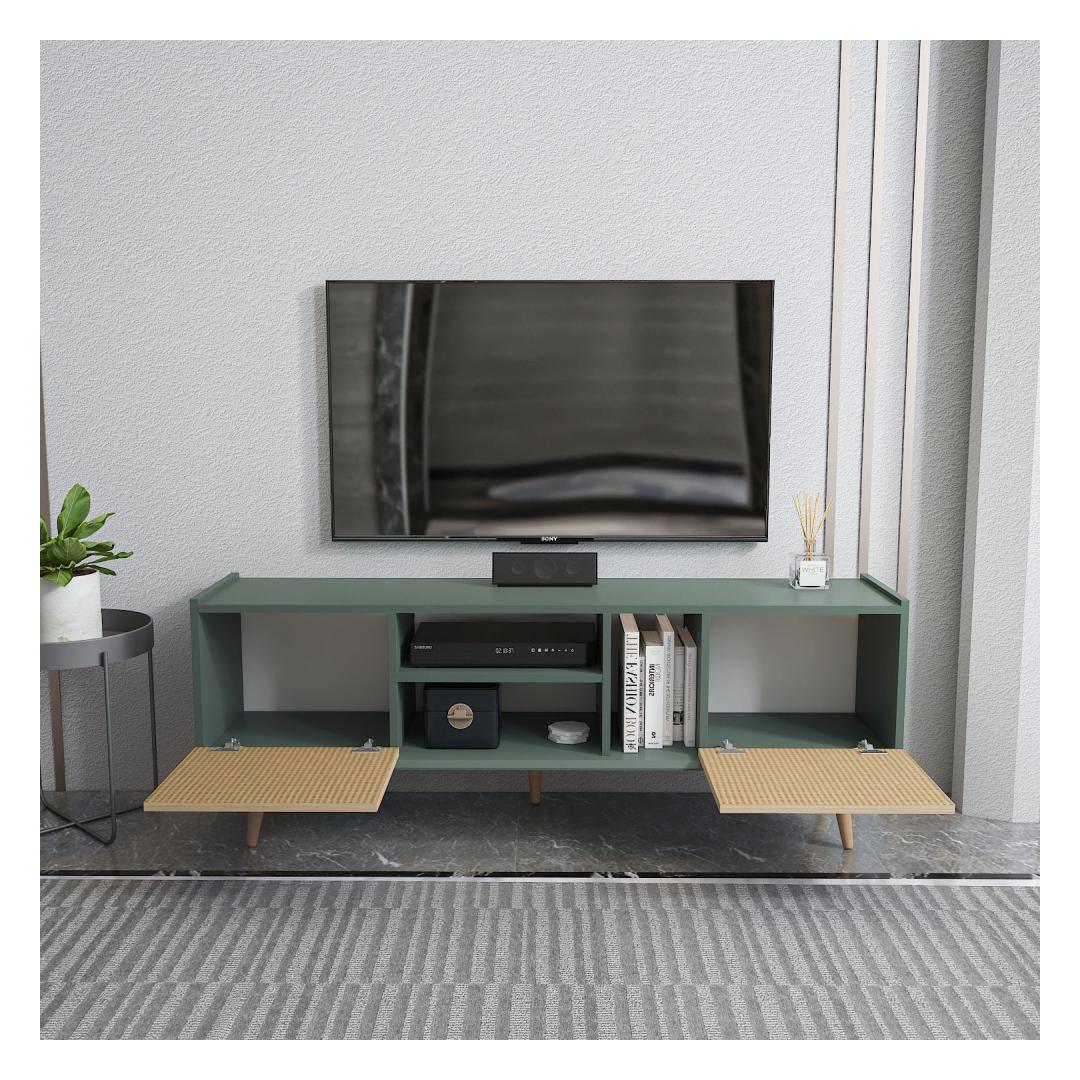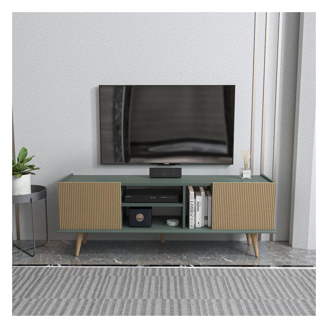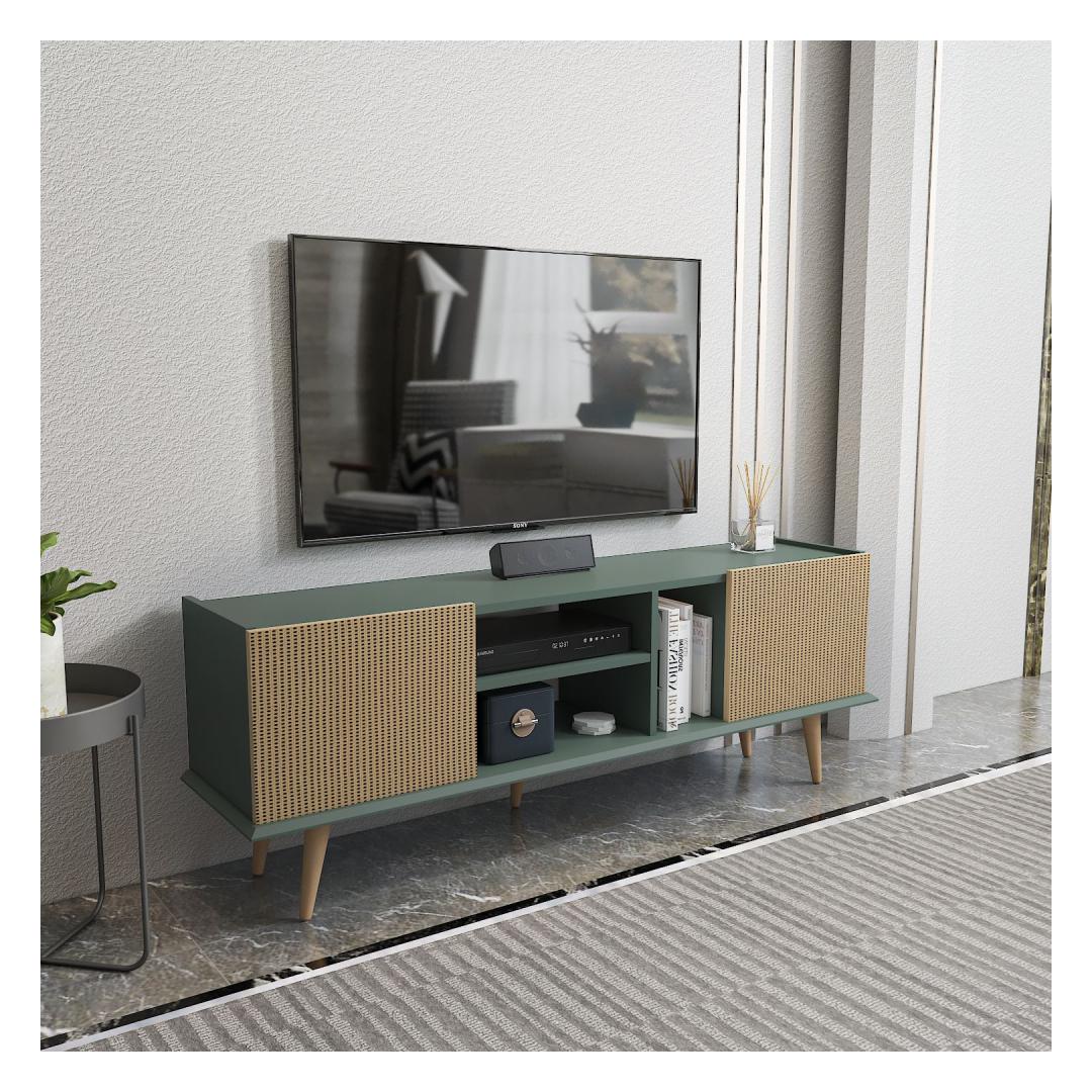 Ütle hüvasti segadusele ja korraldusetusele meie avara telerialusega, mis pakub piisavalt ruumi kõigi sinu meediaesemete jaoks. Sujuv disain ja elegantne heleda pruuni ja rohelise värvikombinatsioon sulanduvad vaevata igasse sisustustüüpi, lisades sinu koju natuke rafineeritust.
