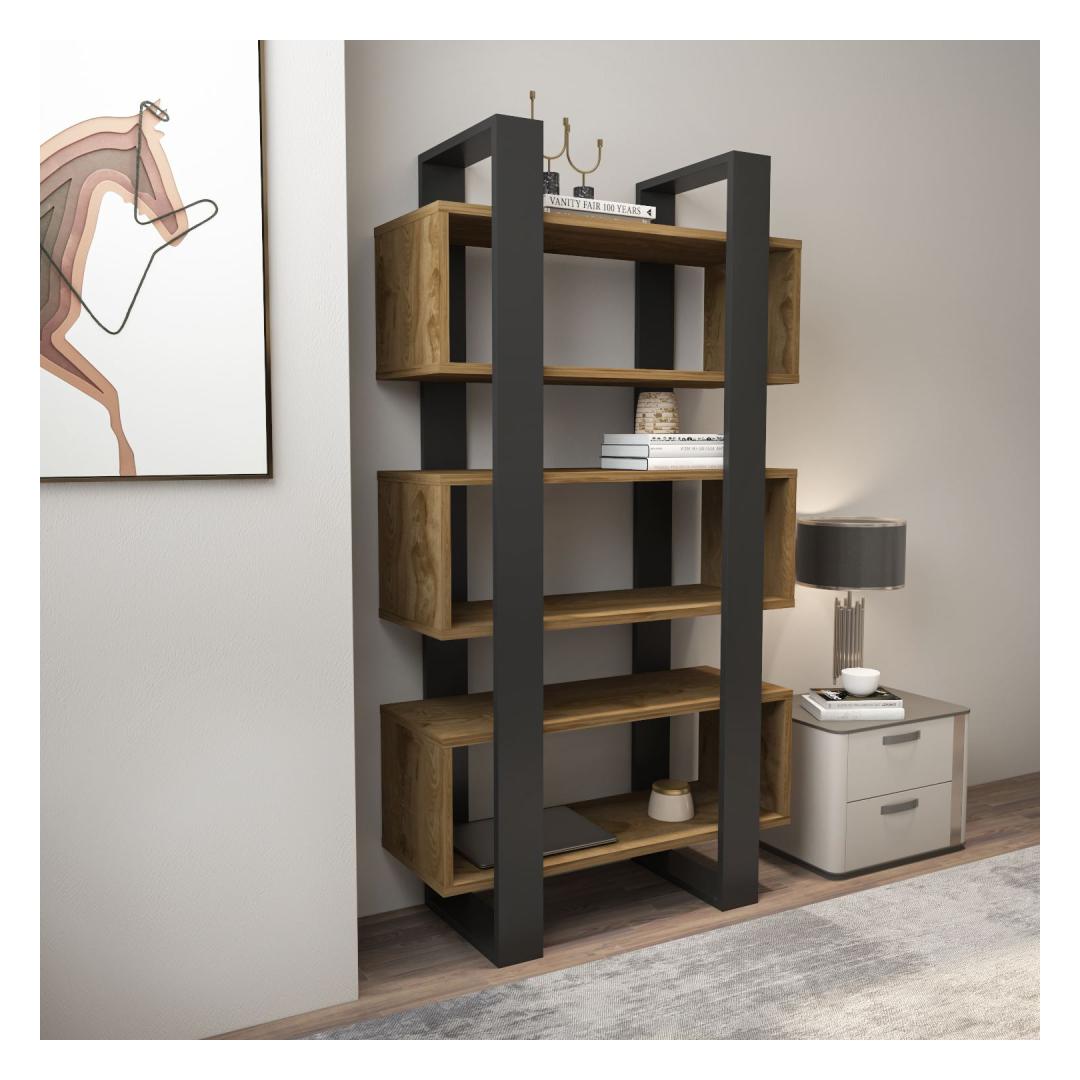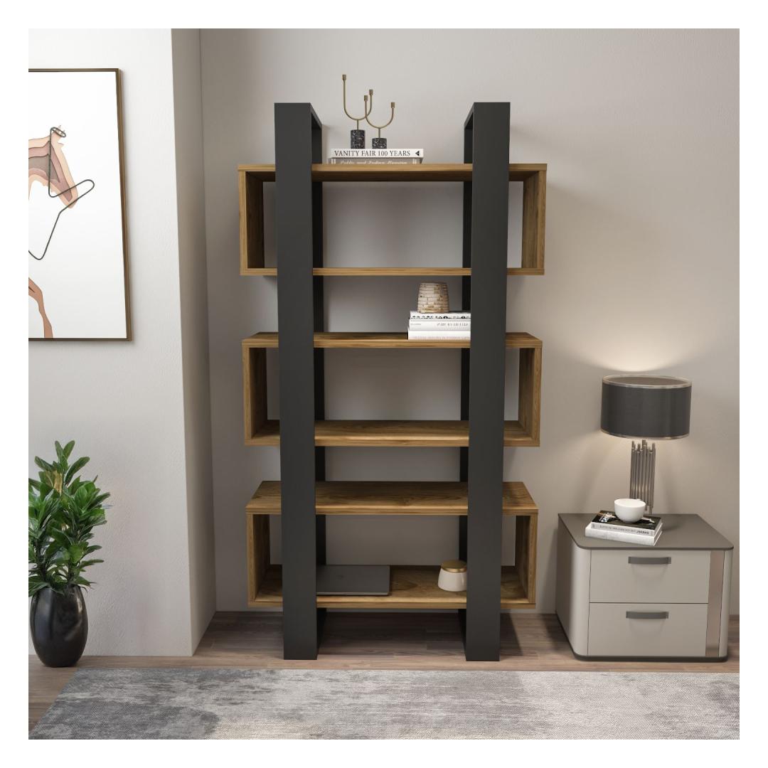 Selle voolujoonelise ja modernse disainiga tõstab see raamaturiiul koheselt iga ruumi ilmet. Pähkli- ja antratsiidi värvide kombinatsioon lisab sinu ruumile elegantsi, muutes selle ideaalseks lisandiks igasse kodu sisustusse.