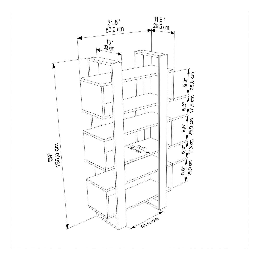 80 cm laiune, 150 cm kõrge ja 29,5 cm sügavune raamaturiiul pakub piisavalt hoiuruumi kõigi sinu raamatute, dekoratiivsete esemete ja muu jaoks. Hoia oma asjad korralikult ja kergesti ligipääsetavana selle funktsionaalse ja stiilse esemega.
