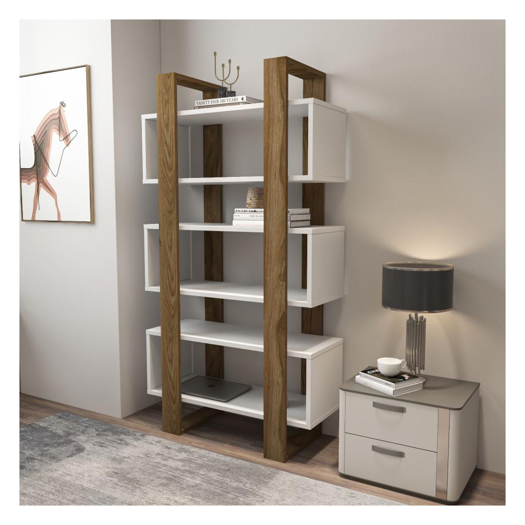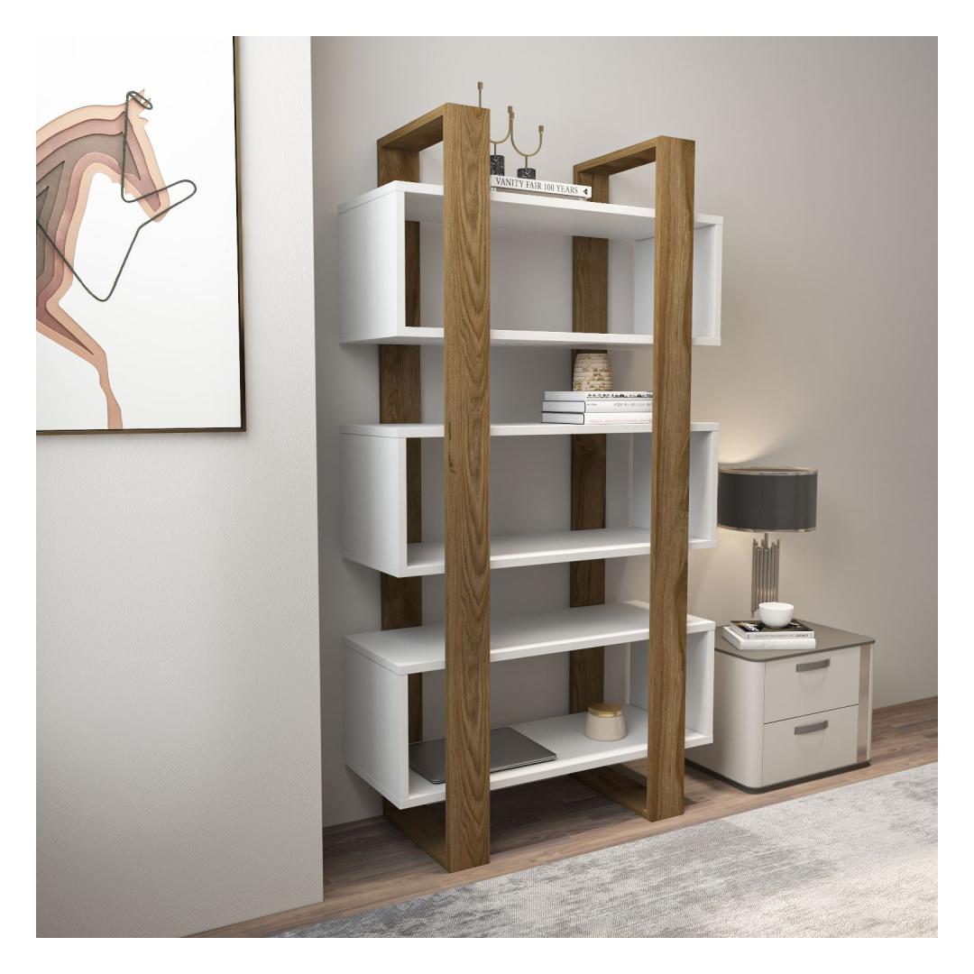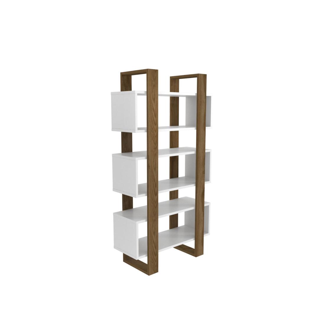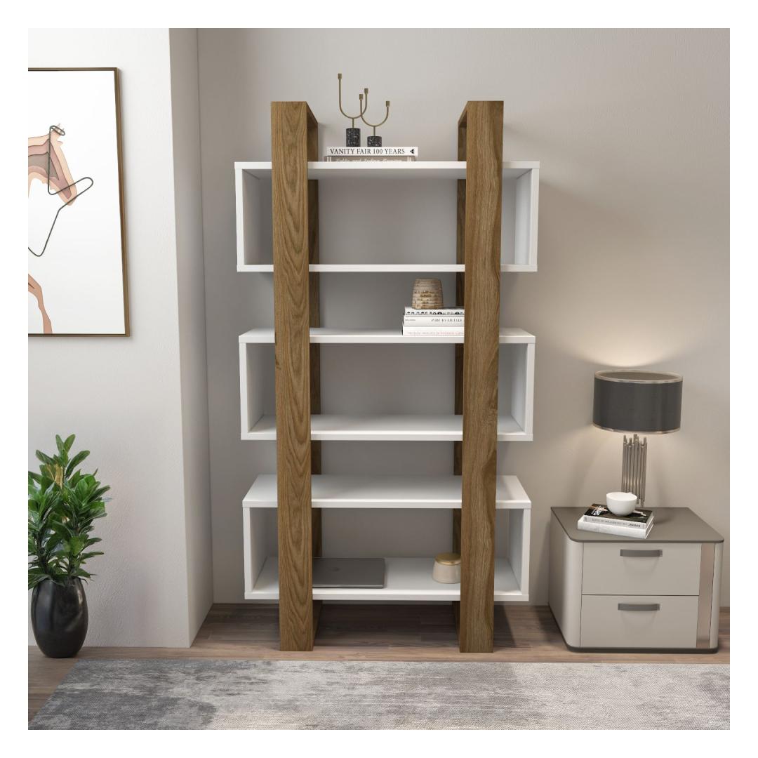 Elegantne disain: Pähkli- ja valge värvi kombinatsioon annab sellele raamatukapile modernse ja šika välimuse, mis sobib igasse ruumi teie kodus. Selle voolujooneline disain tõstab koheselt teie ruumi esteetikat.