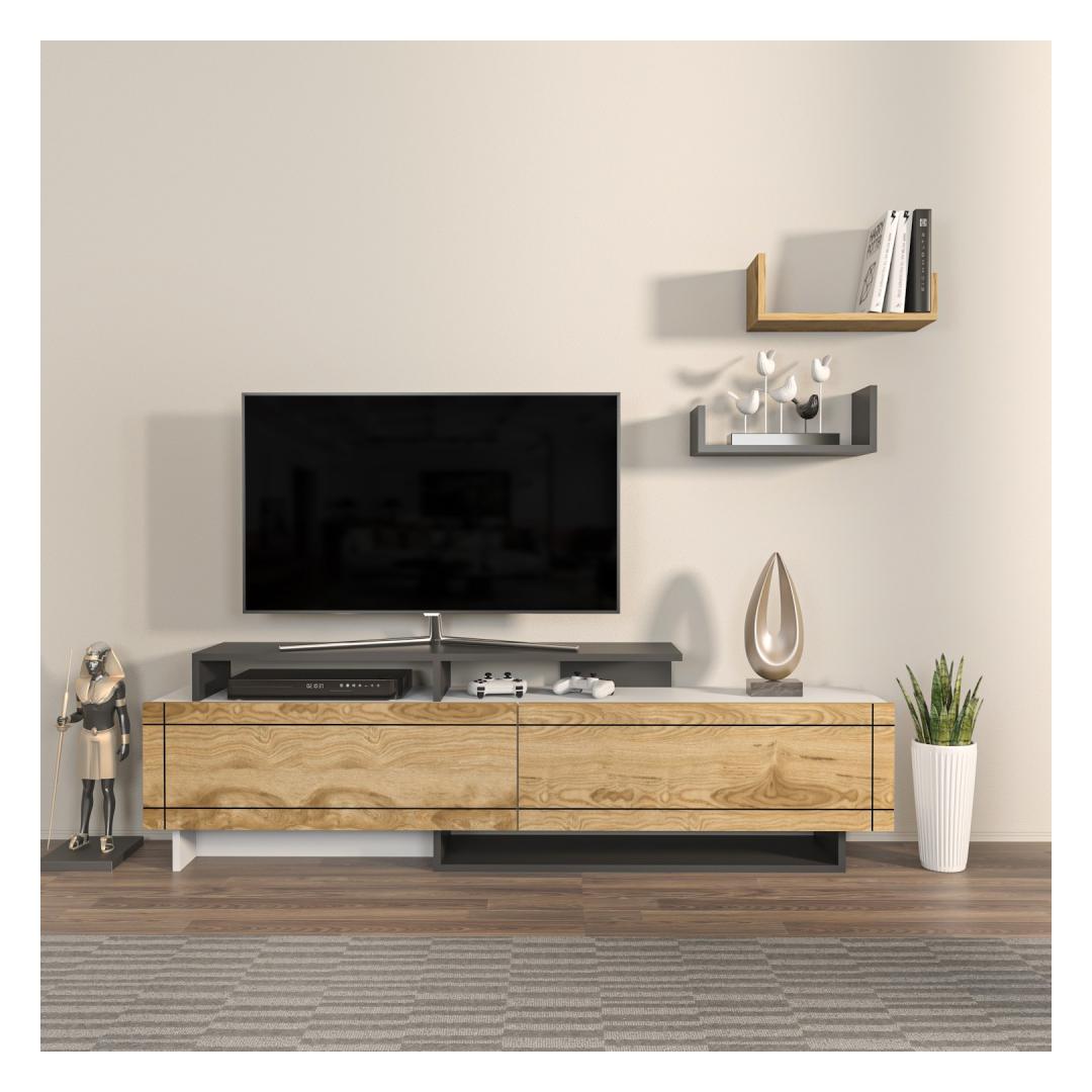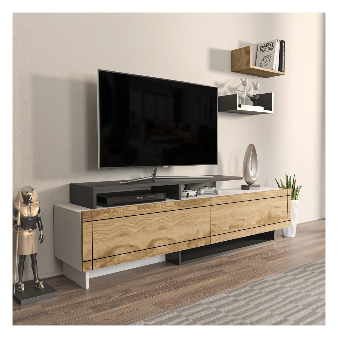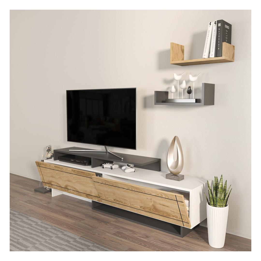 Oma elegantse disaini ja puhaste joontega lisab meie teleripult igasse eluruumi kaasaegset elegantsi. Valge, tamme ja antratsiidi värvide kombinatsioon loob uimastava kontrasti, mis täiendab vaevata iga kodu sisekujundust.