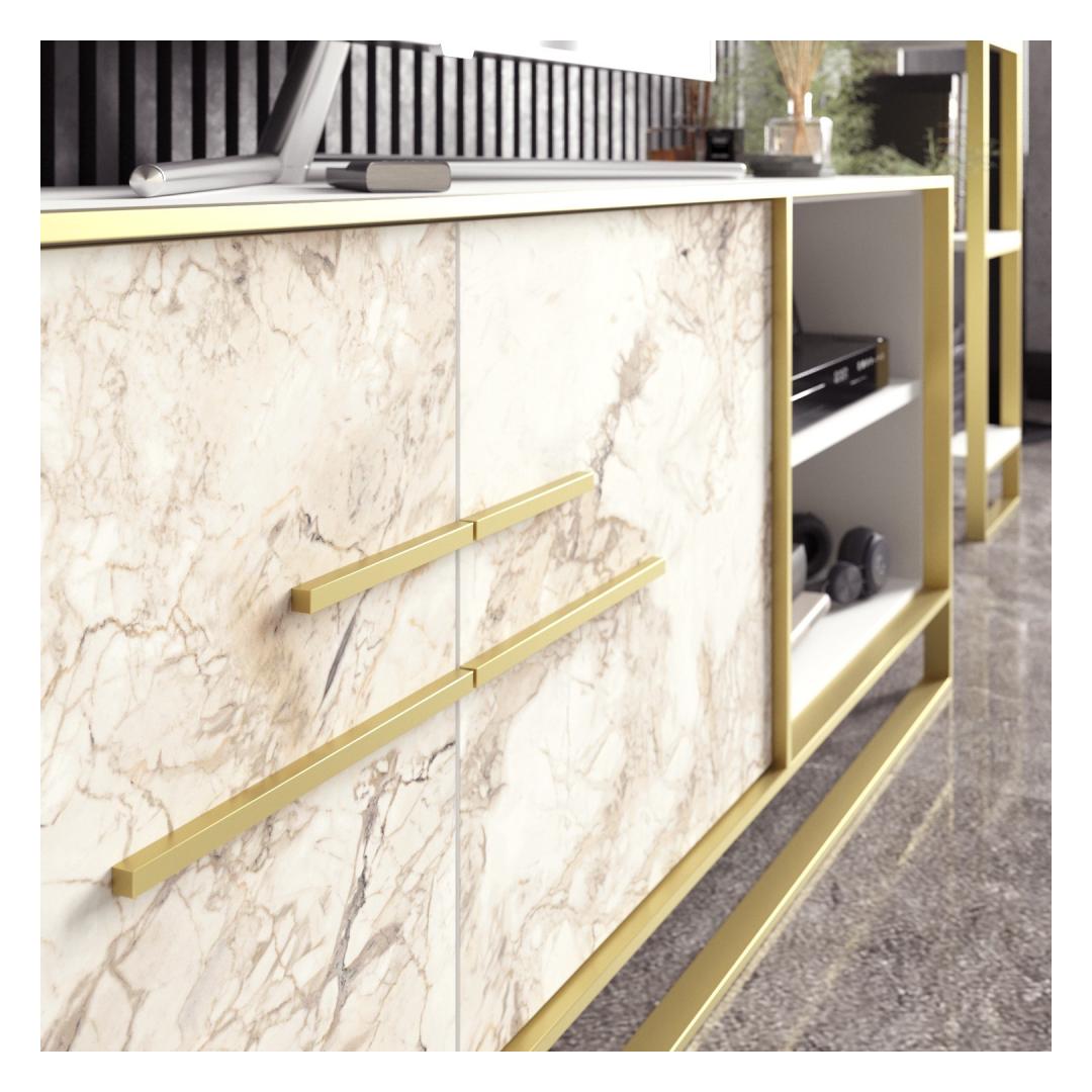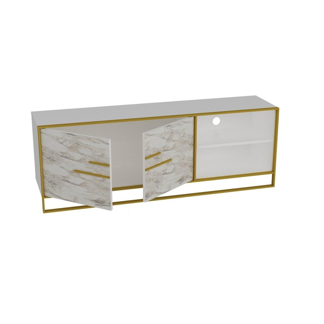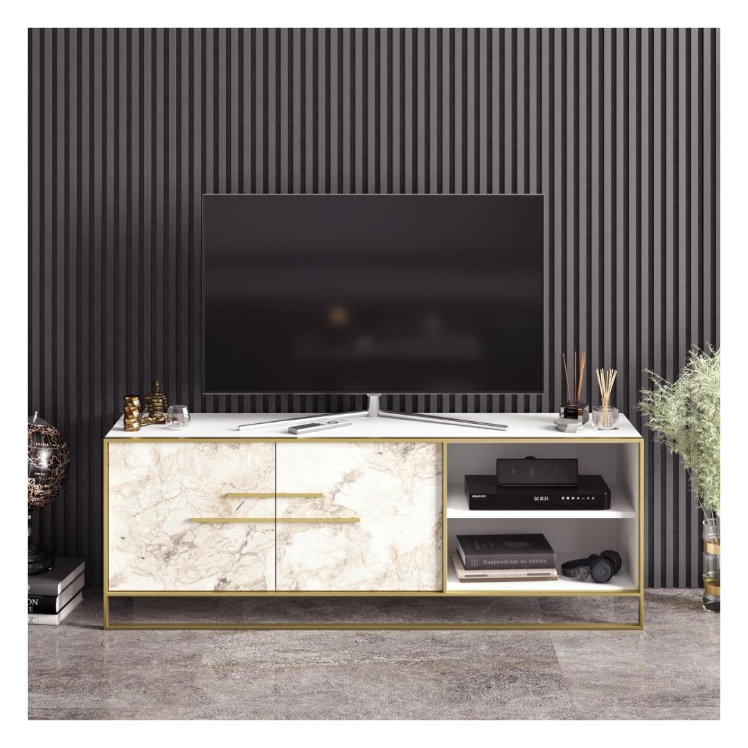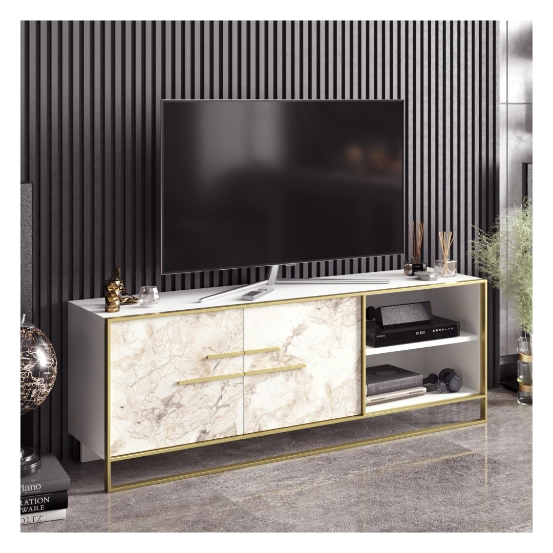 Tutvustame meie suurepärast televiisoripulti, mis on täiuslik segu elegantsusest ja funktsionaalsusest. Barokist inspireeritud disaini ja glamuurse marmormustriga telerialus tõstab iga elutoa stiili.