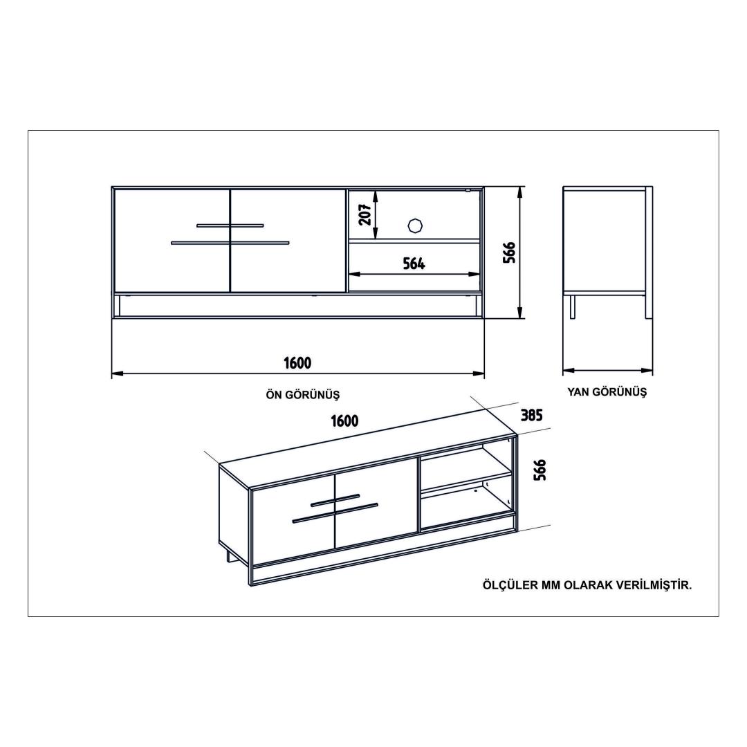 Tänu arvukatele riiulitele ja täiendavatele hoiuvõimalustele pakub see teleripult piisavalt ruumi oma meediaseadmete, dvd-de ja muude oluliste asjade korraldamiseks. Külgmised riiulid pakuvad lisaruumi dekoratiivsete esemete eksponeerimiseks või raamatute hoidmiseks, samas kui fikseeritud seinavõimalus tagab stabiilsuse ja ohutuse.