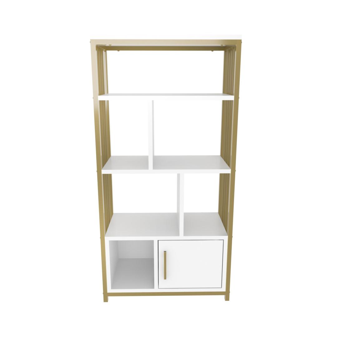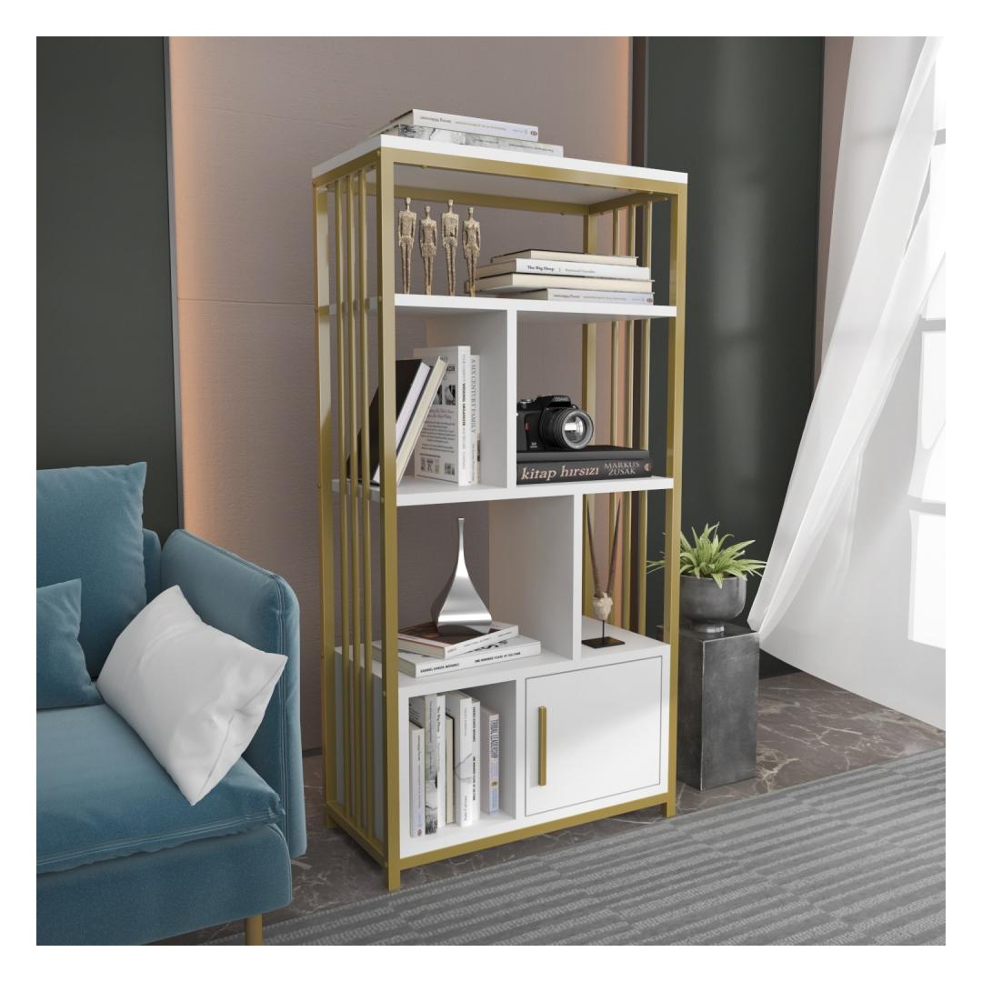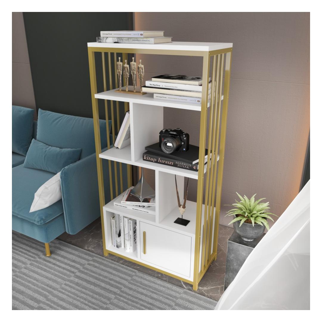 Oma elegantse ja moodsa disainiga ei ole see raamaturiiul mitte ainult hoiulahendus, vaid ka väljapaistev ese, mis lisab teie kodule iseloomu. Valge ja kuldse värvi kombinatsioon loob uimastava kontrasti, mis õhkab luksust ja elegantsi.