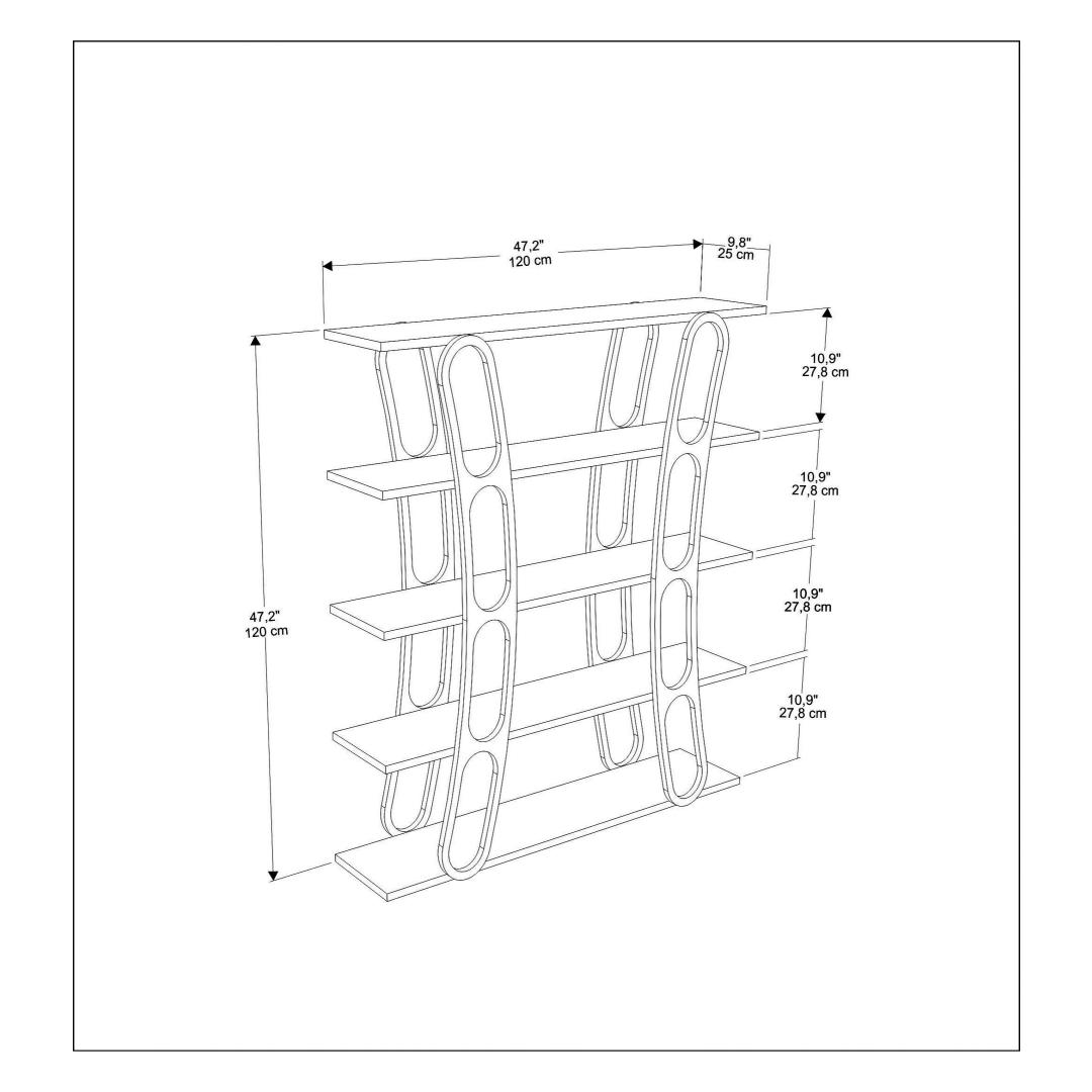 See raamaturiiul laiusega 120 cm, kõrgusega 120 cm ja sügavusega 25 cm pakub piisavalt hoiuruumi kõigile teie asjadele. Alates raamatutest ja ajakirjadest kuni dekoratiivsete esemete ja pildiraamideni saate hõlpsasti korraldada ja eksponeerida oma lemmiktarbeid ilma segadusteta.