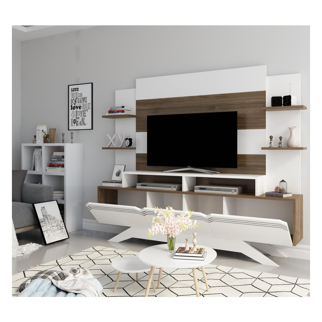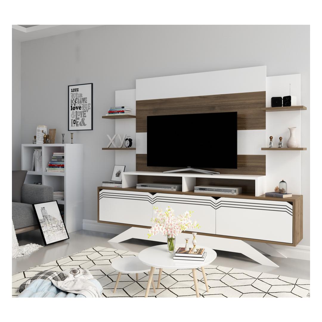 See ülima täpsusega valmistatud teler on valmistatud 100% melamiiniga kaetud puitlaastplaadist, mis tagab vastupidavuse ja pikaealisuse. Pähklipuu ja valge värvikombinatsioon lisab teie eluruumile elegantsust ja elegantsust, muutes selle teie toa keskpunktiks.