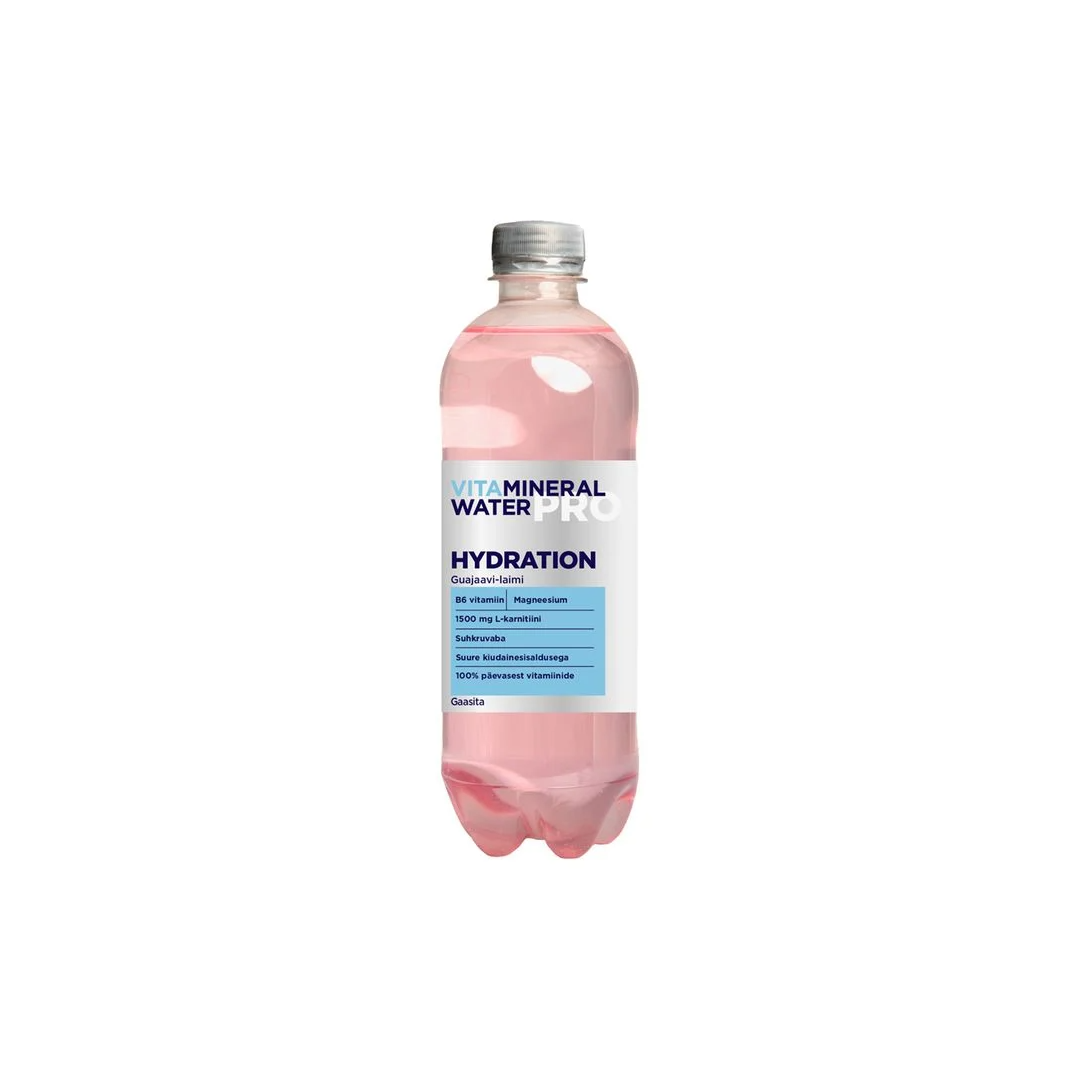 Vitamineral Water PRO — это премиальная серия витаминных напитков, разработанная с учетом различных потребностей человеческого организма. Vitamineral PRO Hydration — это негазированный функциональный витаминный напиток со вкусом гуавы и лайма, содержащий необходимые электролиты (магний и хлорид). 100% суточной нормы витаминов (витамины группы В) в одной бутылке. Идеальный напиток для быстрого восстановления и поддержания ежедневного водного баланса.