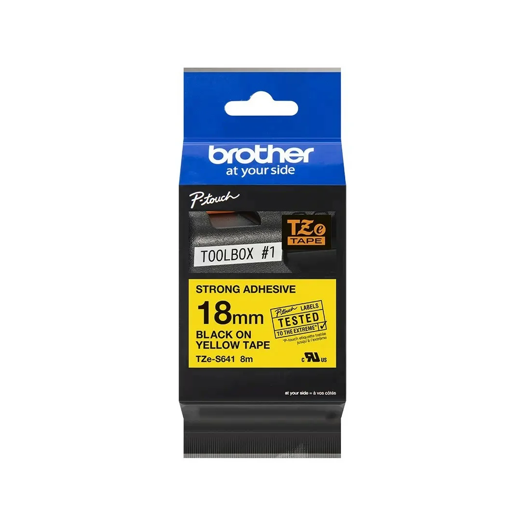Скотч BROTHER Strong TZE-S641 18мм черный/желтый