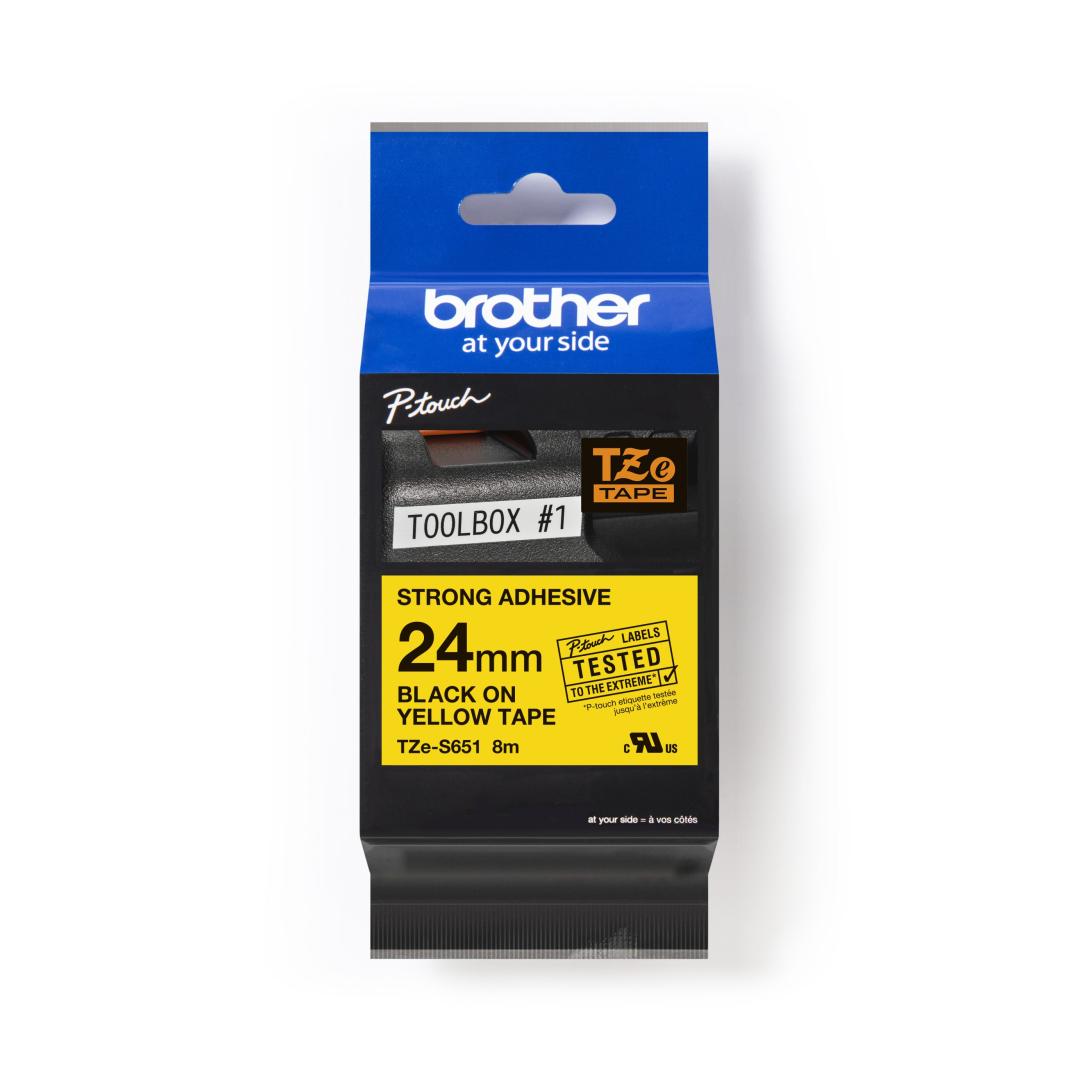Скотч BROTHER Strong TZE-S651 24мм черный/желтый