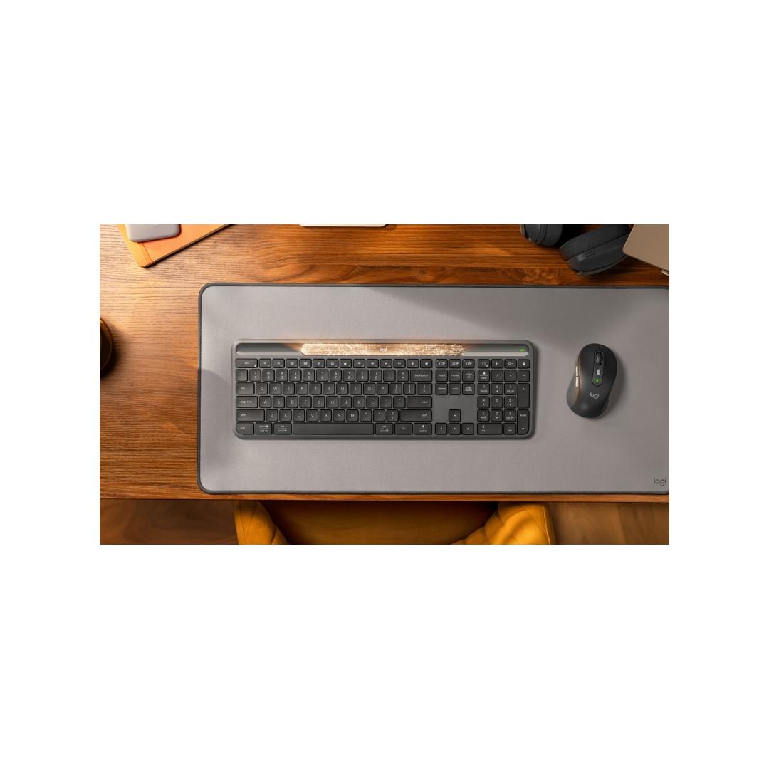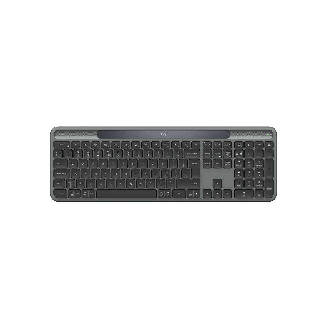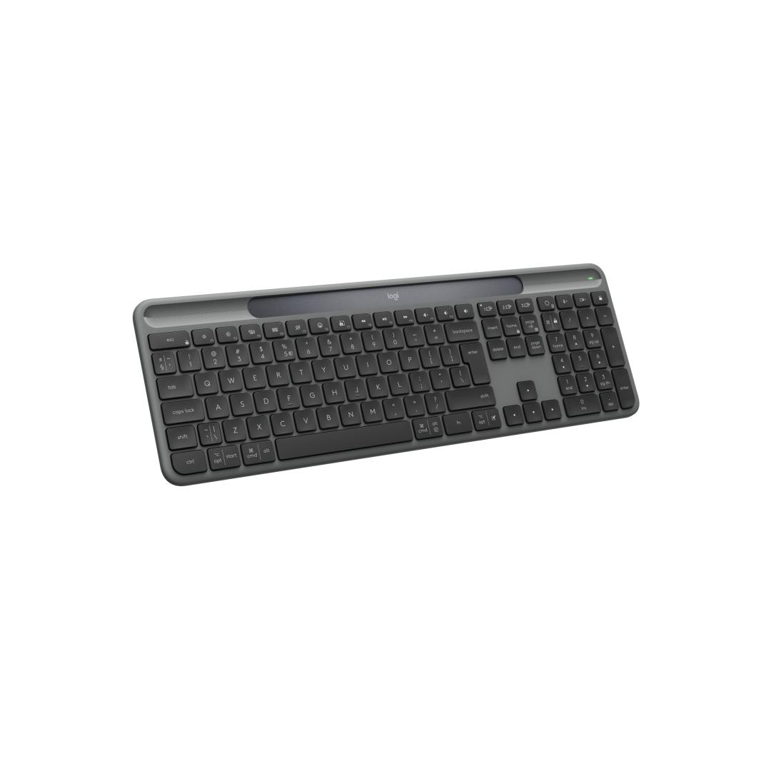 4) Signature Slim Solar+ Keyboard K980 off white recycled plastic content: minimum 52%. Excludes plastic in printed wiring assembly (PWA), and packaging. Signature Slim Solar+ Keyboard K980 graphite recycled plastic content: minimum 70%. Excludes plastic in printed wiring assembly (PWA), and packaging.