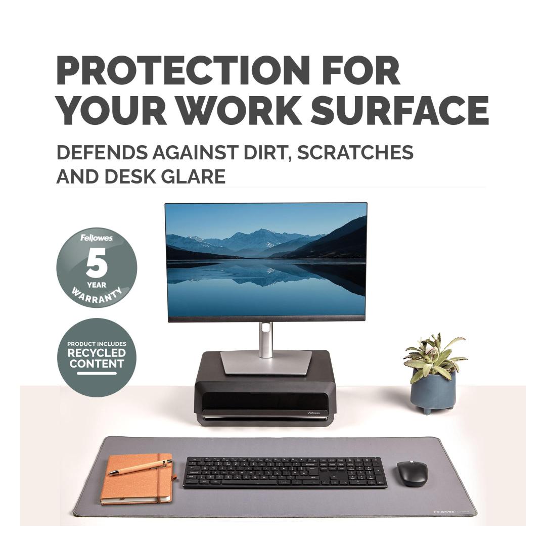 • MADE FROM 83% RECYCLED CONTENT - This Fellowes desk mat is made from 83% post-consumer recycled content