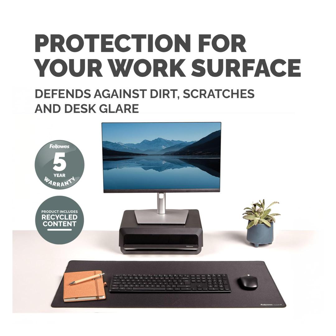 • MADE FROM 83% RECYCLED CONTENT - This Fellowes desk mat is made from 83% post-consumer recycled content