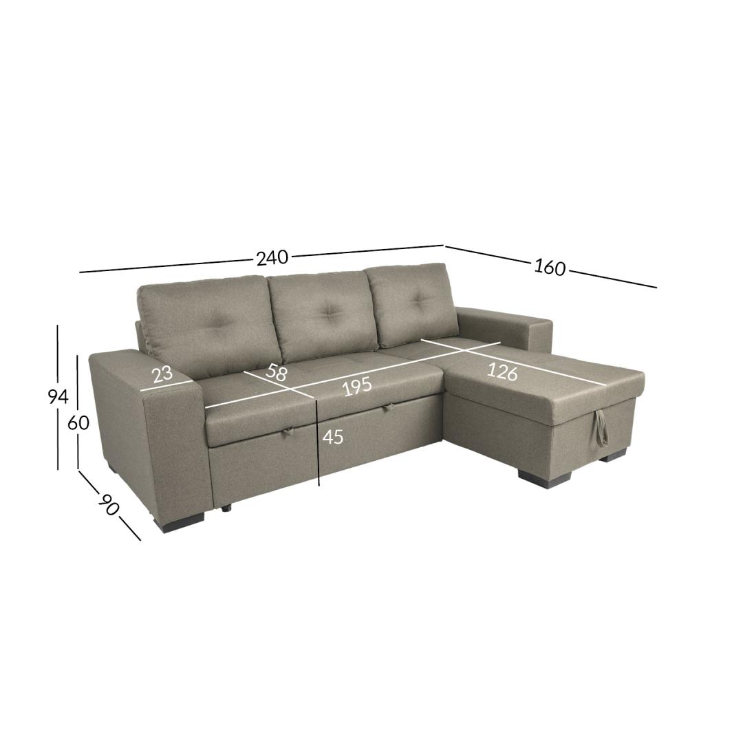 Diivani üldmõõdud: 240 x 90/160 x H94 cm.