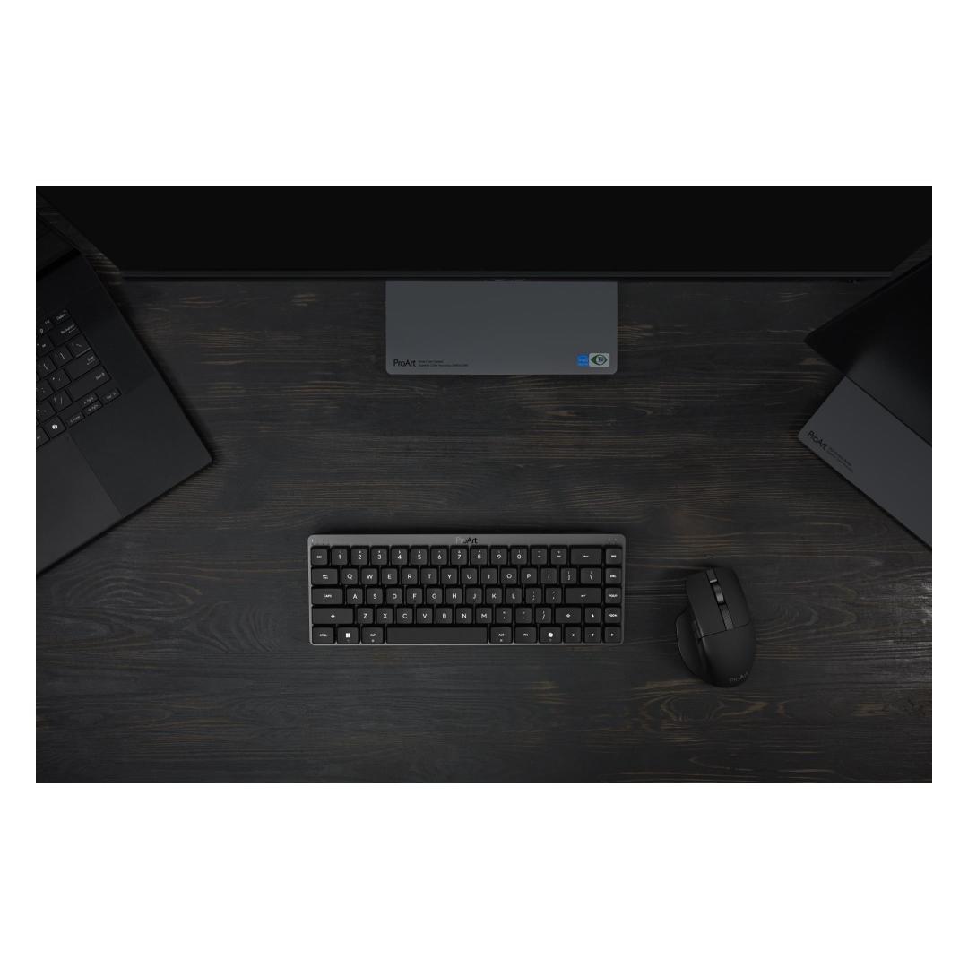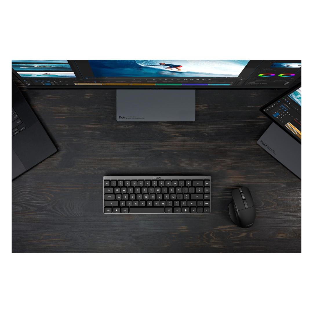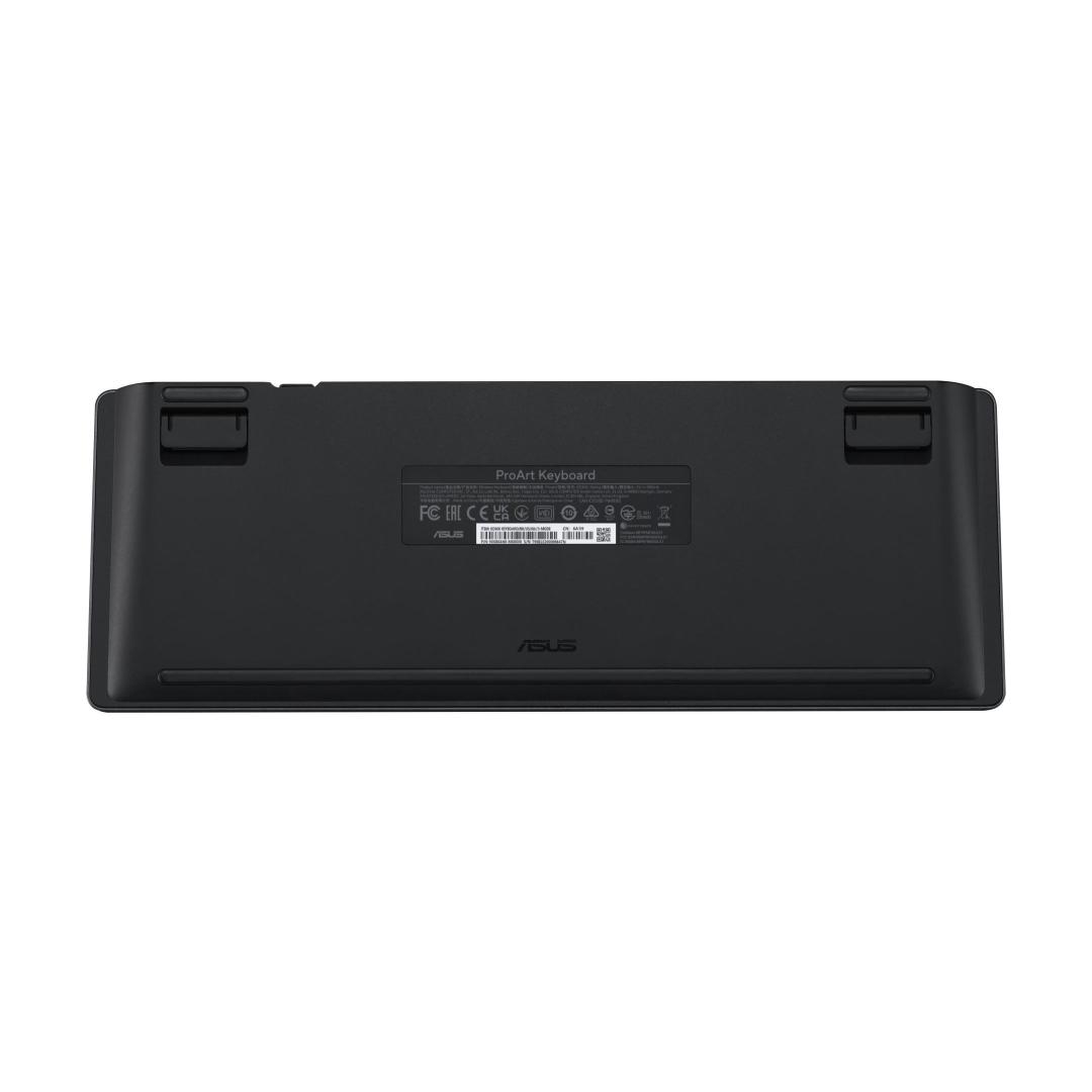 ASUS ProArt Keyboard KD300. Keyboard form factor: 65%, Connectivity technology: Wireless, Device interface: USB + RF Wireless + Bluetooth, Keyboard key switch: Mechanical. Backlight type: RGB LED. Cable length: 1.8 m. Recommended usage: Home/Office. Product colour: Black