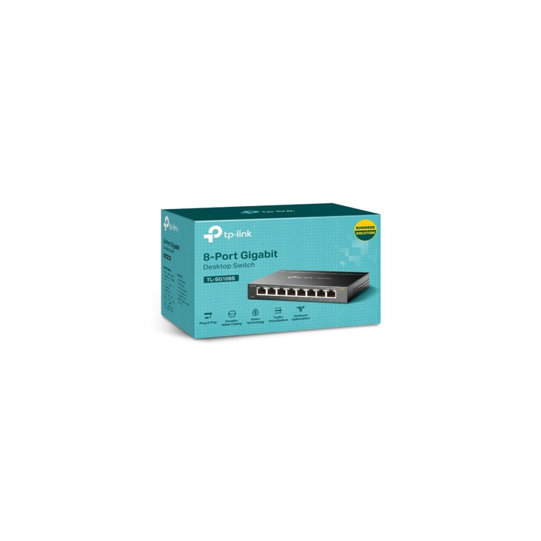 The TP-Link 8-Port 10/100/1000Mbps Desktop Switch provides you an easy way to make the transition to Gigabit Ethernet. Increase the speed of your network server and backbone connections, or make Gigabit to the desktop a reality. Plug and Play design, with no configuration required, makes the product easy to use. Moreover, TL-SG108S adopts lower power consumption design. With the innovative energy-efficient technology, the TL-SG108S can save power consumption, making it an eco-friendly solution for your home or office network.