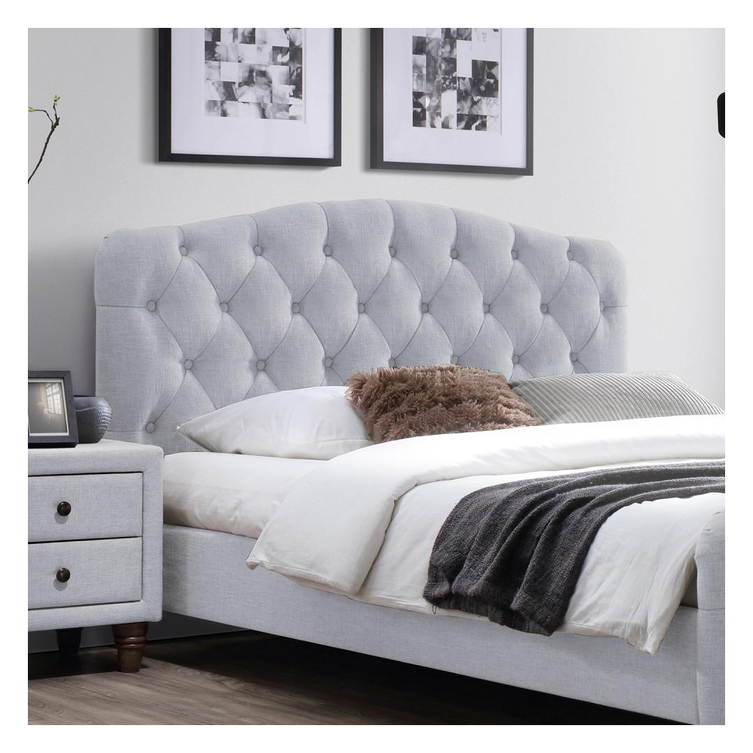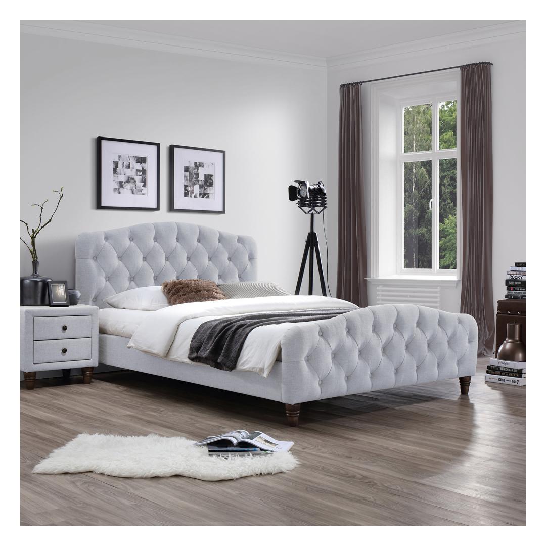 Кровать SANDRA 160x200см, светло-бежевая. Матрас в комплект не входит. Общие размеры кровати 218,5x165xH105см. Подходит матрас 160х200см. Каркас кровати изготовлен из плиты МДФ и обтянут полиэфирной тканью. Деревянные ножки, цвет: коричневый. Рейки основания кровати включены.