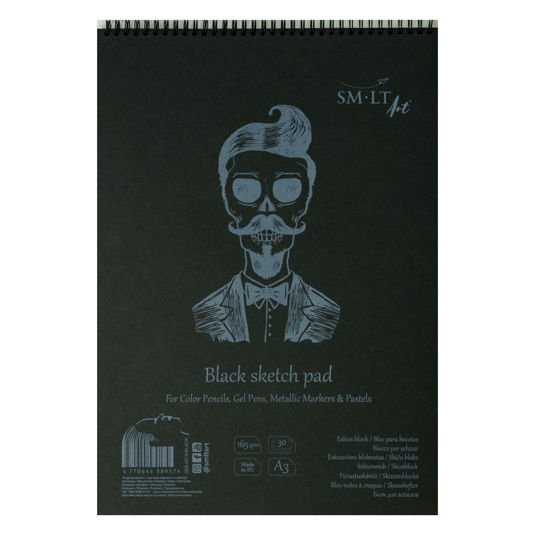 Joonistusplokk spiraalköites SMLT Art A3 165g 30 lehte must
