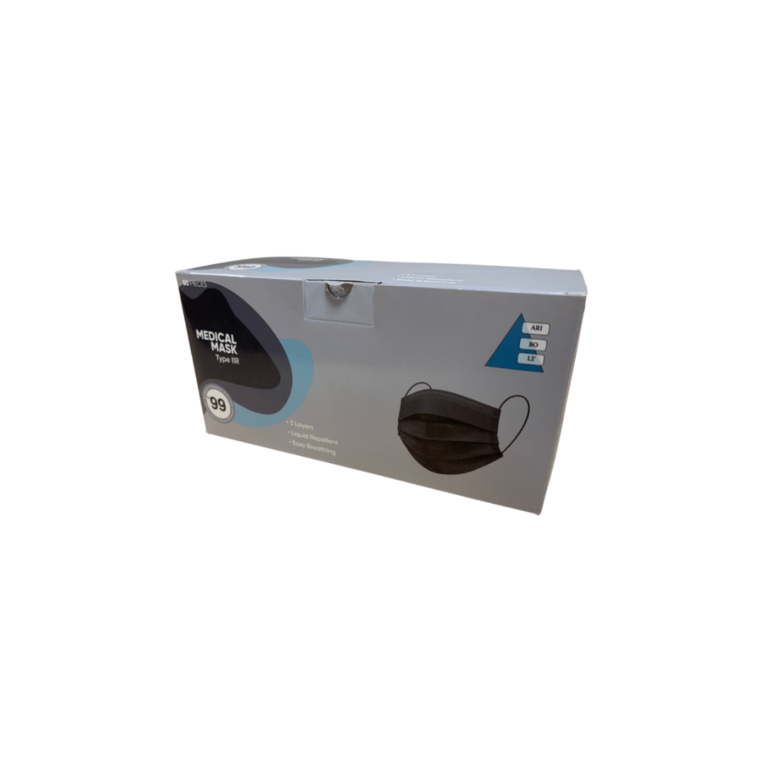 Трехслойная защита органов дыхания «маска медицинская хирургическая» черного цвета. Эффективность фильтрации BFE или бактерий маски составляет ≥ 98%. • Одноразовая 3-слойная • Хирургическая защитная маска TYPE IIR (BFE ≥ 98%) • Упаковка: 50 масок • Высококачественные маски черного цвета