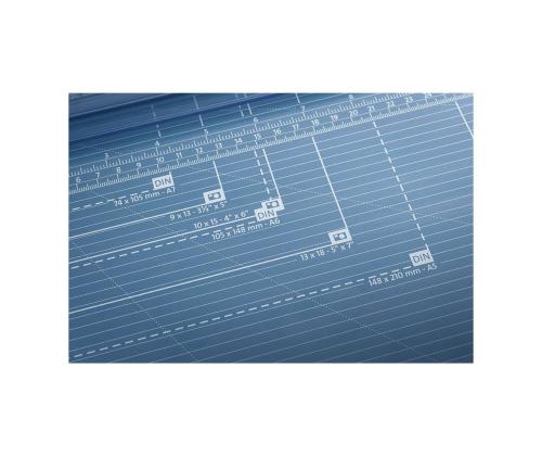 Удобный триммер для профессионального использования • Длина реза: 360 мм • Режущая способность A4 80 г: 20 листов • Размеры: 580 x 395 мм • Вес: 3,4 кг • Линии формата с миллиметровыми делениями облегчают выравнивание разрезаемого материала • Две шкалы стержни • Стабильная металлическая основа с нескользящими резиновыми ножками для надежной фиксации триммера • Вращающееся лезвие в закрытом пластиковом корпусе • Самозатачивающееся стальное вращающееся лезвие в безопасном режущем корпусе • Автоматическое крепление линии реза для быстрой фиксации материала резать на месте • Легко заменяемые режущие головки