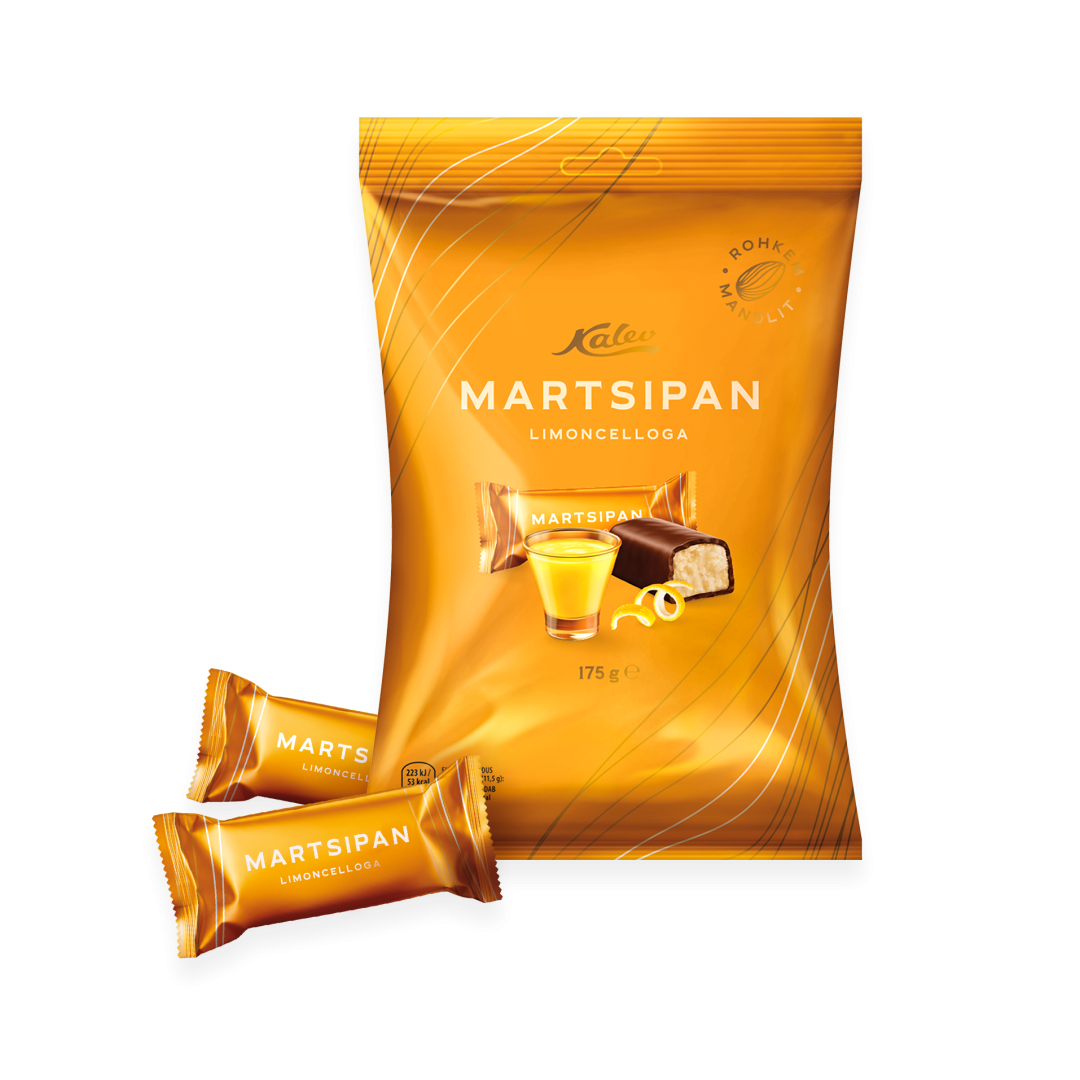 Kalevi martsipan nüüd kõrgema mandlisisaldusega! Kalevi klassikalist martsipani täiendab Limoncello, mis viib Sind maitserännakule otse Itaaliasse. Martsipanikommid on kaetud hõrgu tumeda šokolaadi glasuuriga.