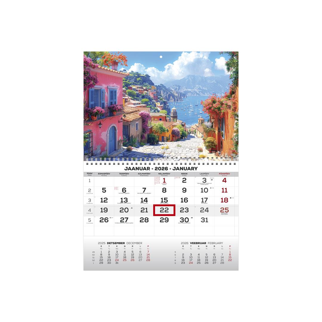 1 месяц+картинка, спиральный переплет, отверстие для подвешивания, маркер даты.