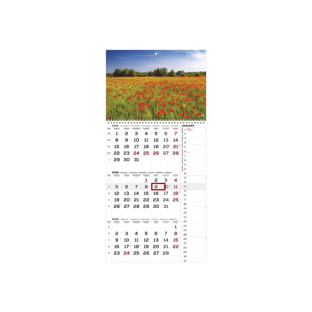 3 месяца + картинка, спиральный переплет, отверстие для подвешивания, маркер даты.