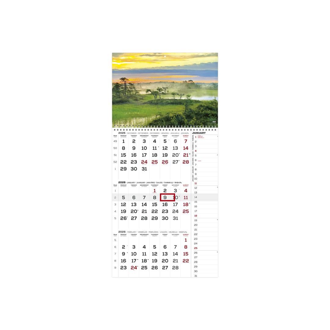 Размер: 297 x 630 мм Спиральный переплет Отверстие для подвешивания Объем содержимого 12 страниц Маркер даты Содержание темно-серый/красный Язык: эстонский, английский, латышский, литовский, финский, русский Календарь включает в себя следующее: Государственные праздники, национальные праздники 4 стран с сокращениями. (EST, LAT, LIT, FIN), фазы луны, знаки зодиака, предыдущий и следующий месяц, номер недели.