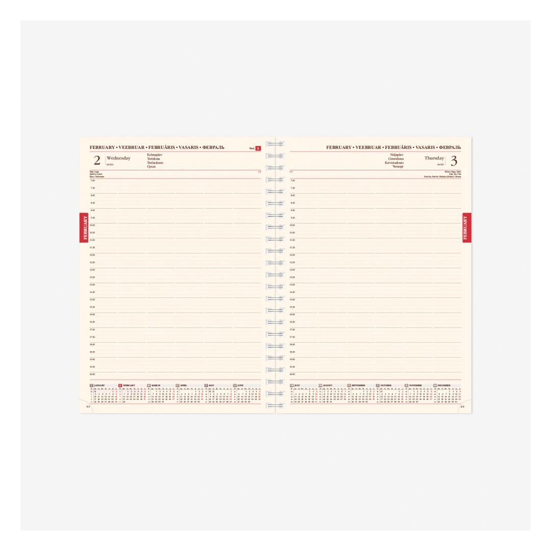 Размер обложки: 240 х 315 мм Размер содержимого: 210 х 297 мм Обложки из мягкой искусственной кожи, с прошитыми краями, внутренние карманы на обложке Спиральный блок контента Перфорированные углы страниц Язык: эстонский, английский, латышский, литовский, русский Все SENATOR календари включают в себя следующее: Государственные праздники, национальные годовщины, именины, 37 национальных государственных праздников с сокращениями, переход на летнее и зимнее время, ежедневный список, мини-календарь, номер недели, часы работы 07:00-20:00. Дополнительные страницы включают годовой план (6 месяцев на странице), настольный календарь, листы заметок, карту Эстонии, Латвии и Литвы, контакты.