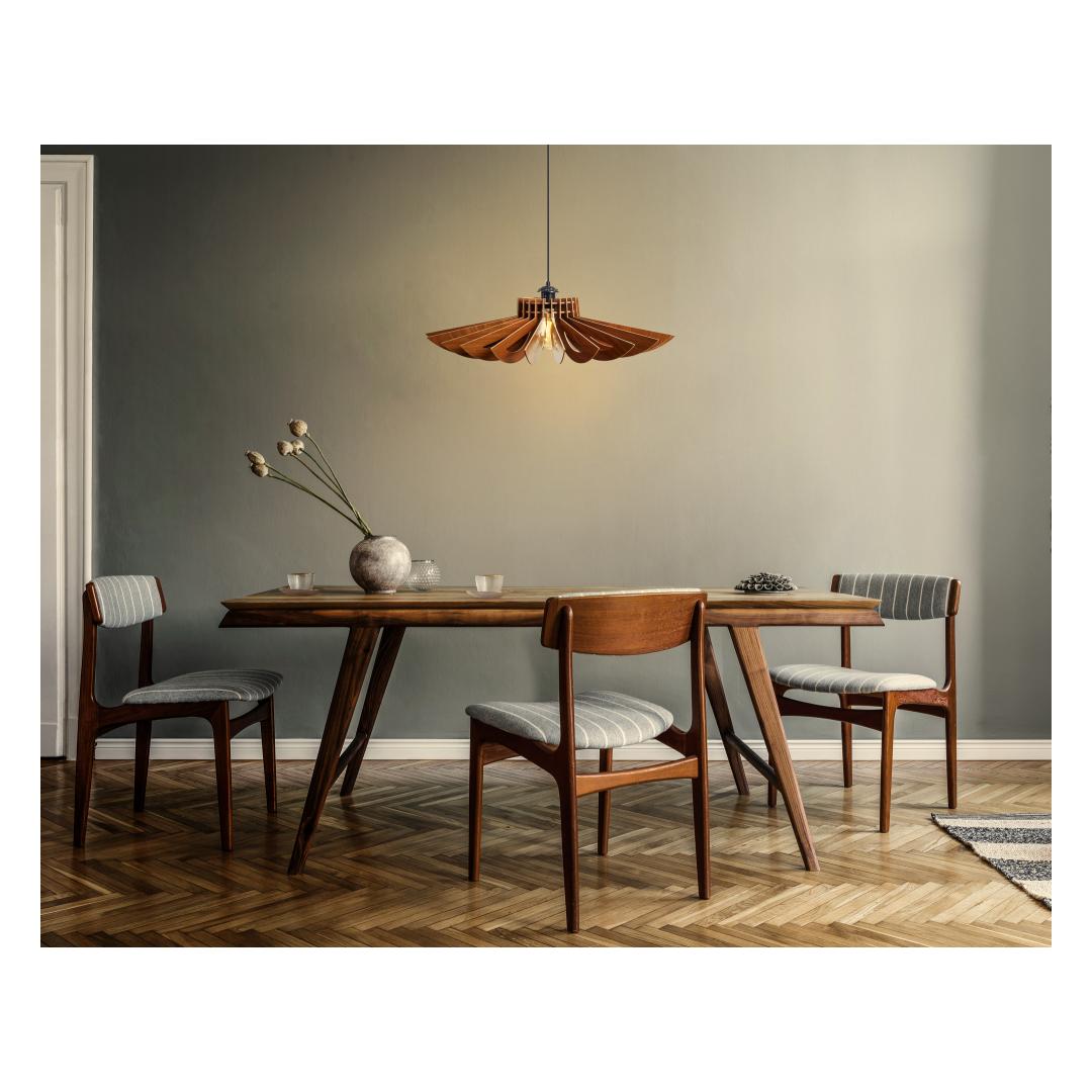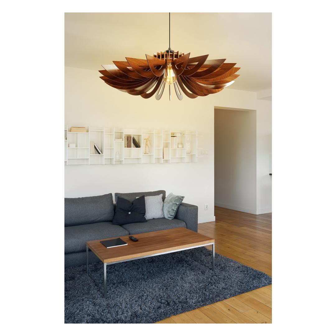 Muuda oma eluruum elegantsi ja võlu pelgupaigaks meie Erilise Disaini Daisy Lühtriga. See hämmastav lühter sisaldab ainulaadset karikakra disaini, mis köidab igaühe tähelepanu, kes ruumi siseneb. Soe pähklipuu värv lisab elegantsi, muutes selle ideaalseks keskpunktiks igas toas.Tõsta oma kodu sisekujundustLisa oma koju luksuse puudutus meie Erilise Disaini Daisy Lühtriga. Peen disain ja soe pähklipuu värv tõstavad koheselt sinu kodu sisekujundust, luues hubase ja kutsuva atmosfääri, mida sina ja sinu külalised armastate.Loo lõõgastav õhkkondOlgu sul õhtusöök või rahulik õhtu kodus, meie Erilise Disaini Daisy Lühter aitab sul luua lõõgastava õhkkonna, mis paneb sind kunagi lahkuma. Reguleeritav kaabel võimaldab sul kohandada kõrgust vastavalt sinu ruumile, samas kui ühtlane värv ja Skandinaavia disain lisavad igasse tuppa modernse puudutuse.Tehnilised andmed:MDF KERE (Paksus: 3 mm)Korki pikkus: 11 cmKorki diameeter: 52 cmKogu kõrgus: 45 cmPesade tüüp: E 27 Max 40 WVärv: Pähklipuu värv(i)Kontseptsioon: Ühtlane värv, Skandinaavia Värv: Walnut