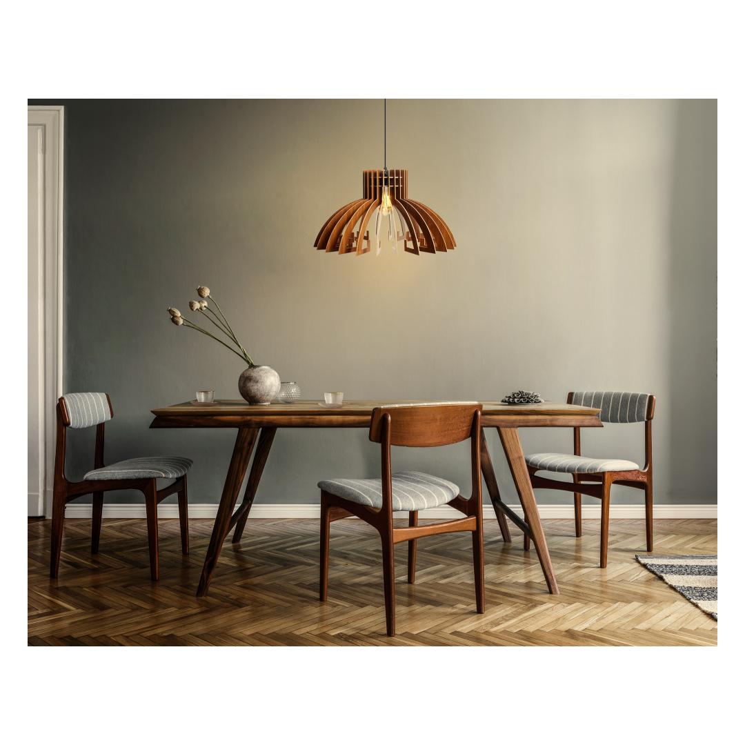 Muuda oma eluruum meie kauni Erilise Disaini Kroonlühtriga. See hämmastav lühter sisaldab ainulaadset MDF-korpust rikkaliku pähklivärviga, lisades igasse ruumi elegantsi ja rafineeritust. Erilise disaini kroon annab sellele kuningliku ilme, muutes selle ideaalseks keskpunktiks sinu kodus.Tõsta oma ruumiValgusta oma kodu stiili ja graatsia abil meie Erilise Disaini Kroonlühtriga. Reguleeritav kaabel võimaldab sul kohandada kõrgust vastavalt sinu ruumile, samas kui ühtlane värv ja Skandinaavia disain toovad igasse ruumi kaasaegse ja šiki esteetika. Olgu sul soov lisada luksust oma söögituppa või luua hubane atmosfäär magamistuppa, see lühter on ideaalne valik.Loo avaldusTee avaldus meie Erilise Disaini Kroonlühtriga. Peen disain ja soe pähklivärv loovad kutsuva atmosfääri, mis jätab mulje sinu külalistele ja muudab sinu kodu nagu palee. Tõsta oma ruumi selle hämmastava lühtriga ja muuda oma kodu stiili ja rafineerituse pelgupaigaks.Tehnilised andmed:MDF-korpusKorki pikkus: 18 cmKorki diameeter: 39 cmReguleeritav kaabelKogu kõrgus: 55 cmPesade tüüp: E 27 Max 40 WVärv: PähklivärvKontseptsioon: Ühtlane värv, Skandinaavia Värv: Walnut