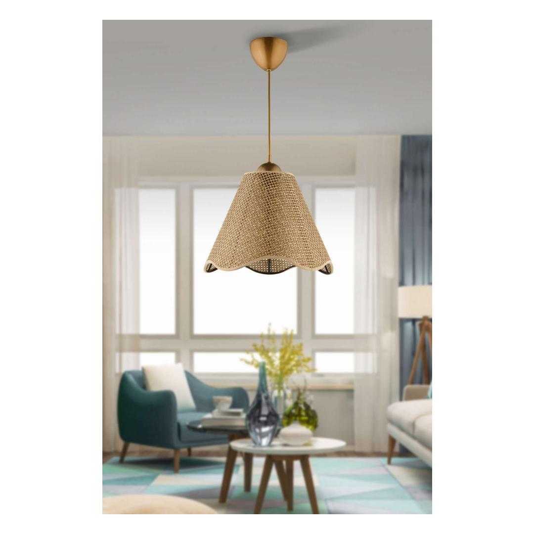 Muuda oma eluruumi meie kauni beeži ja kuldse lühtriga. See hämmastav ese lisab igasse ruumi elegantsi ja rafineeritust, luues sooja ja kutsuva atmosfääri, mida sina ja sinu külalised armastate. Plastkeha ja PVC kork on mitte ainult vastupidavad, vaid ka kaunilt kujundatud, muutes selle lühtri tõeliseks silmapaistvaks elemendiks sinu kodus.Tõsta oma kodu sisekujundustParanda oma kodu ilu meie beeži ja kuldse lühtriga. Peen disain ja luksuslik värvikombinatsioon tõstavad koheselt sinu kodu sisekujundust, lisades igasse ruumi sära ja stiili. Olgu see sinu elutoas, söögitoas või magamistoas, see lühter muutub ruumi keskpunktiks, tõmmates imetlust ja komplimente kõigilt, kes seda näevad.Loo soe ja kutsuv atmosfäärBeeži ja kuldse lühtri pehme kuma loob sinu kodus sooja ja kutsuva atmosfääri, ideaalne lõõgastavateks õhtuteks lähedastega või külaliste meelelahutamiseks. Selle lühtri ainulaadne disain ja värviskeem rikastavad iga ruumi atmosfääri, muutes selle hädavajalikuks lisandiks sinu kodu sisekujunduse kollektsiooni.Tehnilised andmed:Materjal: Plastkeha, PVC korkKorgi suurus: Ø32 h:25 cmPõhja plaadi suurus: Ø9 h:7 cmPesade tüüp: 1 x E 27 Max 40 WKogukõrgus: 33 - 70 cmPirn ei ole kaasasPinget: 110-240 VIP kood: IP20Värv: Beež ja kuld Värv: Beige Gold