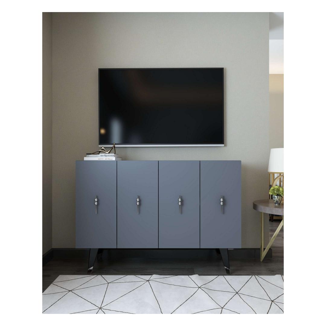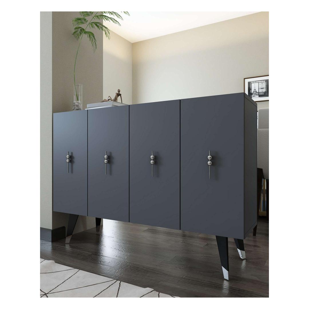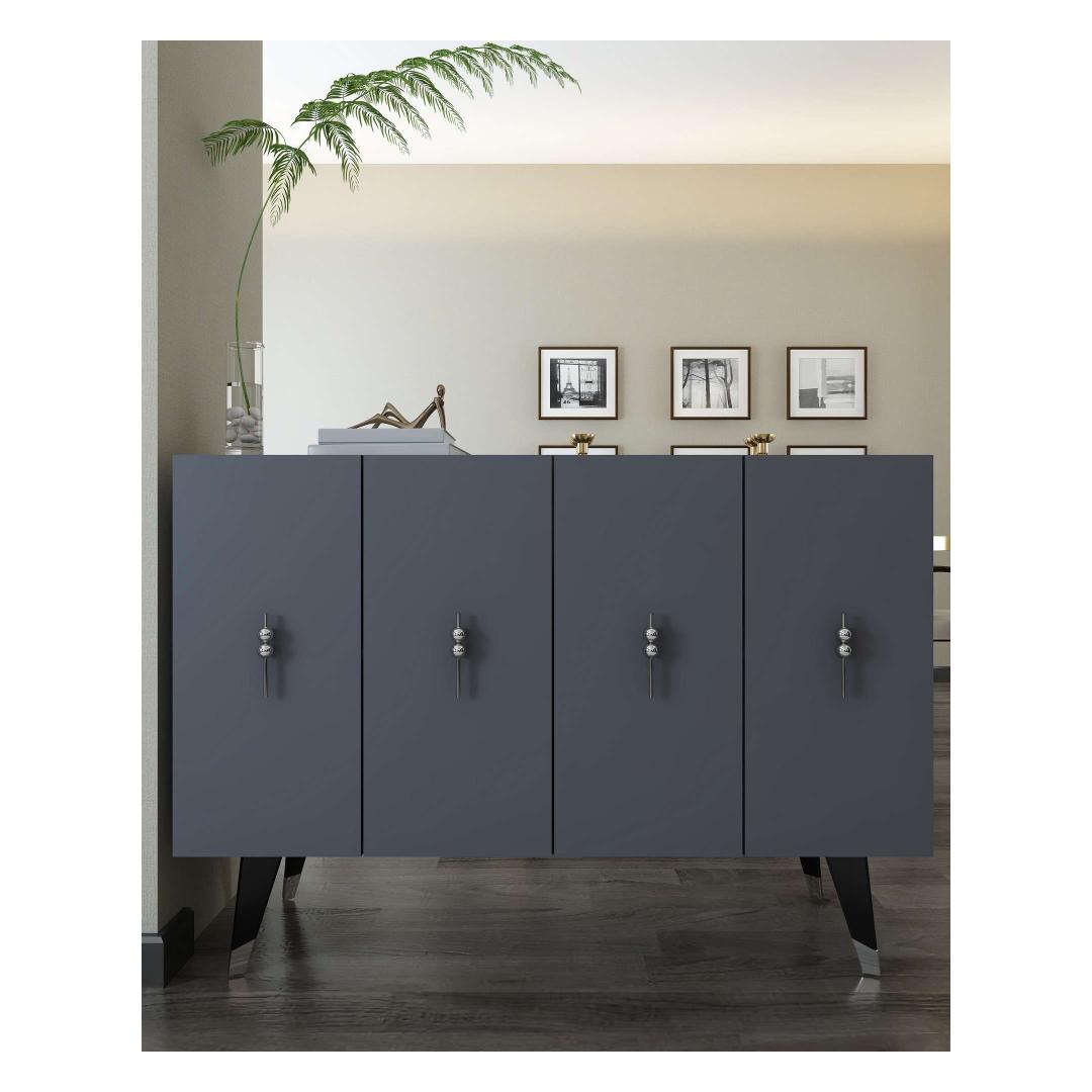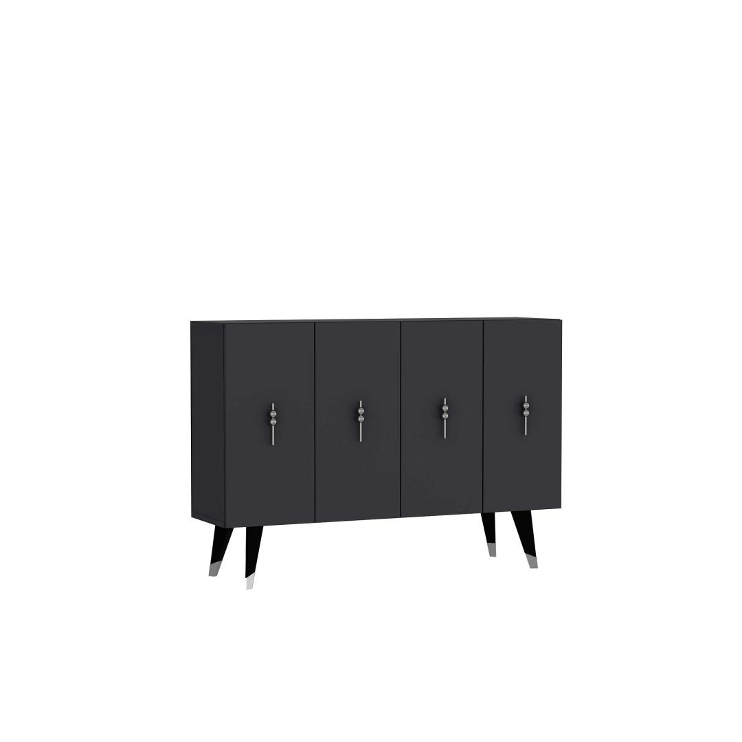 Muuda oma eluruum meie hämmastava konsooliga, mis kiirgab elegantsi ja rafineeritust. Valmistatud 100% melamiinkattega puitlaastplaadist, on see konsool mitte ainult vastupidav, vaid ka uskumatult stiilne.Elegants ja funktsionaalsus koosSelle voolujoonelise disaini ja modernse antratsiidi ja hõbedase värvigammaga tõstab see konsool koheselt iga ruumi välimust. 18 mm paksus tagab tugevuse, samas kui avarad riiulid pakuvad piisavalt ruumi kõigi sinu oluliste asjade hoidmiseks.Mitmekülgne ja praktiline120 cm laiune, 80 cm kõrge ja 29,6 cm sügavune konsool on ideaalne lisa igasse koju. Rohked riiulid pakuvad palju ruumi, et eksponeerida oma lemmik dekoratiivesemeid või hoida oma asju. Võimalus kinnitada see seina külge suurendab selle mitmekülgsust ja funktsionaalsust.Tehnilised andmed:Materjal: 100% melamiinkattega puitlaastplaatPaksus: 18 mmLaius: 120 cmKõrgus: 80 cmSügavus: 29,6 cmRiiuli laius: 57,2 cmRiiuli kõrgus: 27,3 cmJala kõrgus: 20 cmVärv: Antratsiit ja hõbeSaab kinnitada seina külgeÄra jäta kasutamata võimalust omada seda erakordset konsooli, mis ühendab stiili ja praktilisuse. Uuenda oma eluruumi täna selle hädavajaliku mööbliesemega. Värv: Anthracite Silver