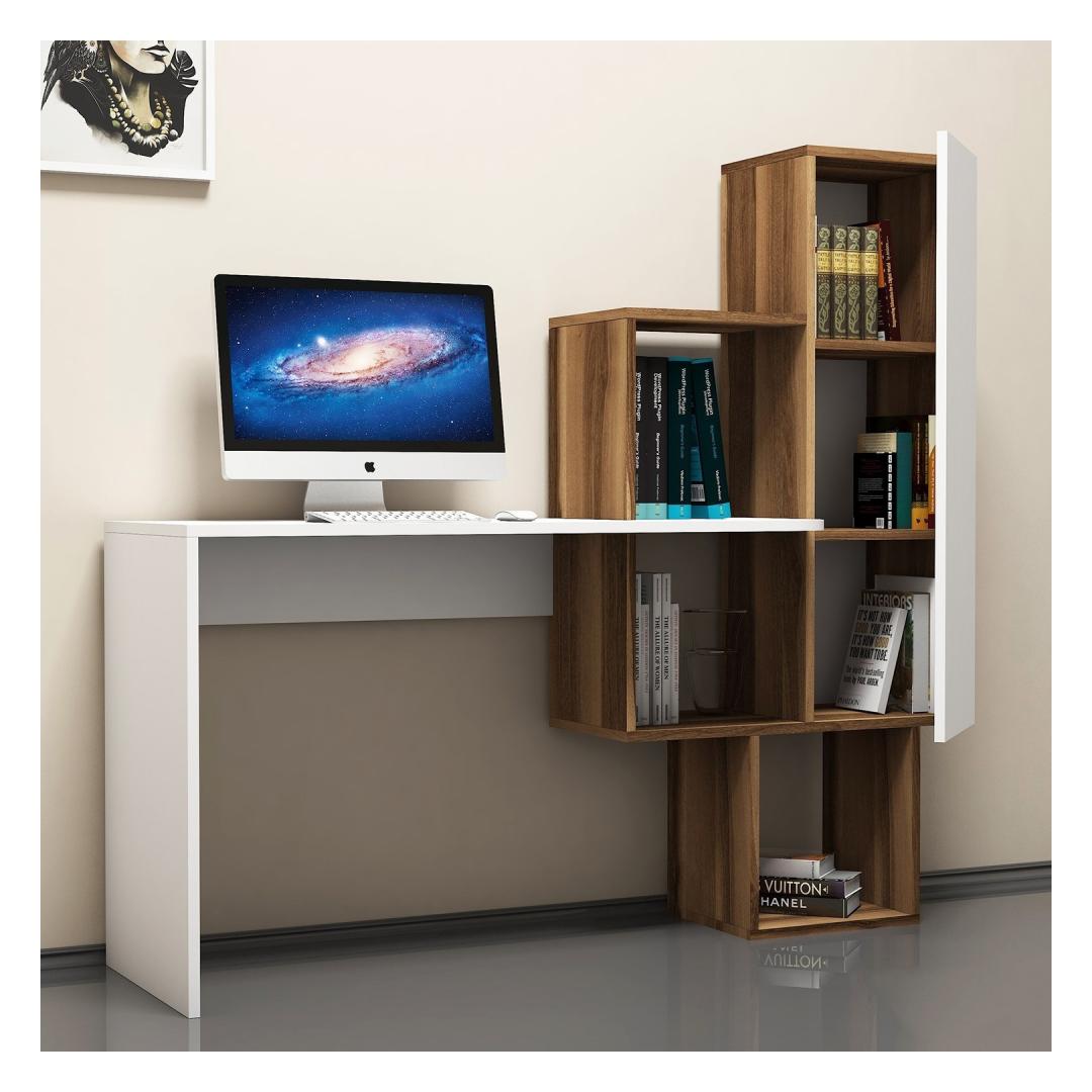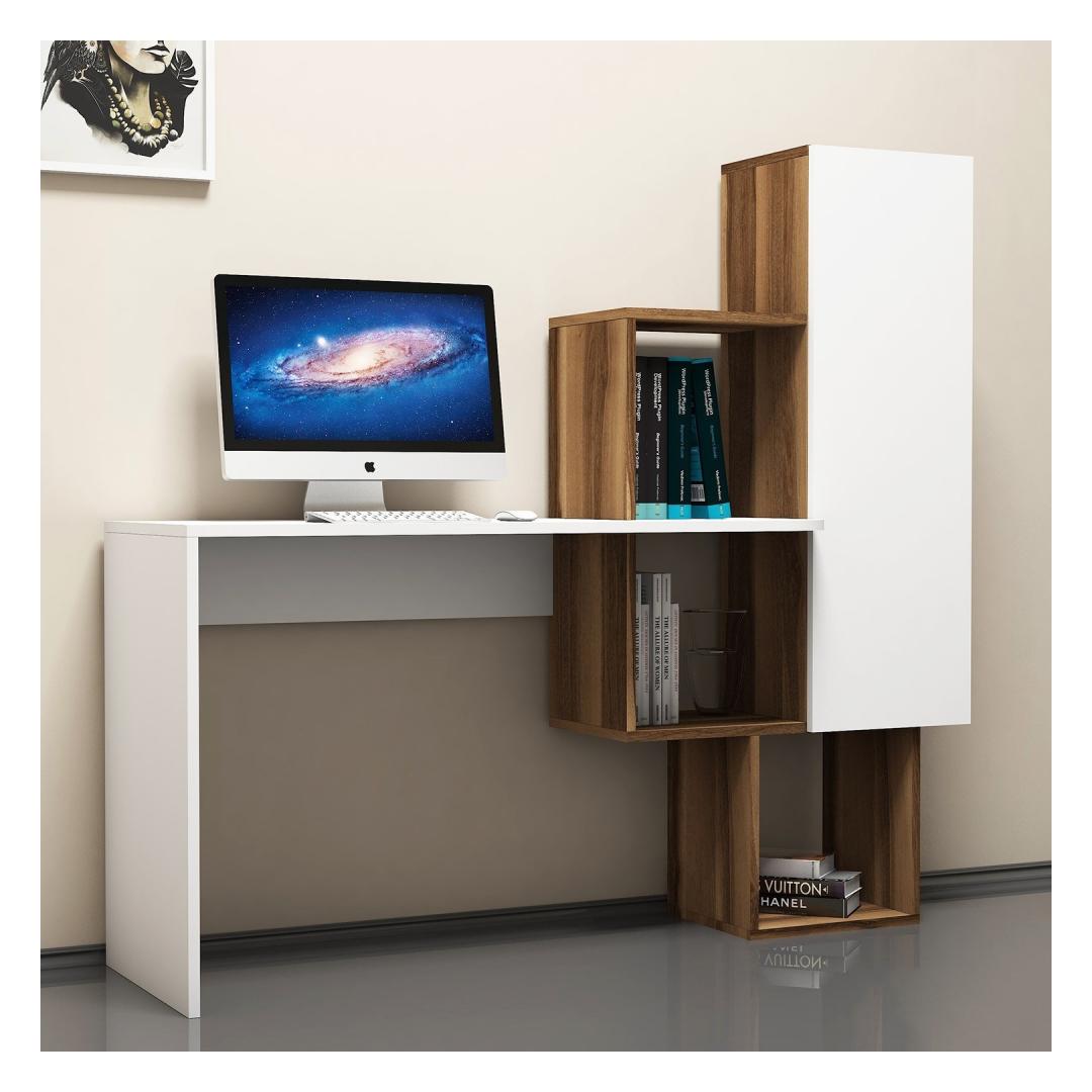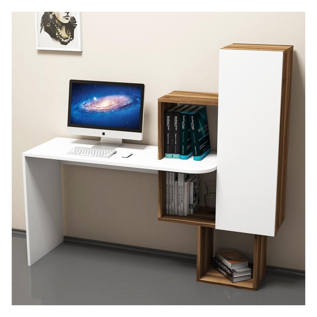 Töölaual on kaunis pähklipuu ja valge värvi kombinatsioon, mis lisab teie tööruumile elegantsi. Kaasaegne ja uudne disain tõstab koheselt teie ruumi atmosfääri, muutes õppimise meeldivamaks kogemuseks.