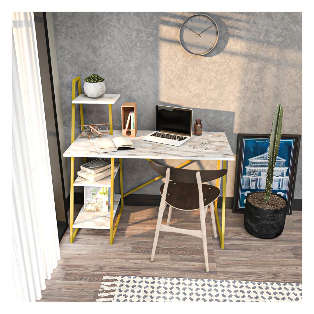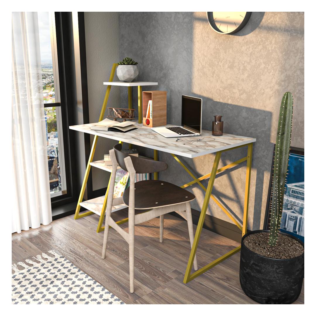 Luksusliku, marmorist inspireeritud viimistlusega laud õhkab külluslikkust ja suursugusust. Valge ja kuldse värvi kombinatsioon lisab sellele glamuuri, muutes selle esemeks, mis sobitub vaevata mis tahes sisustusstiiliga.