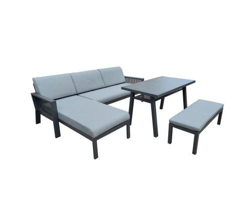 Aiamööblikomplekt DELGADO nurgadiivan, laud ja pink
