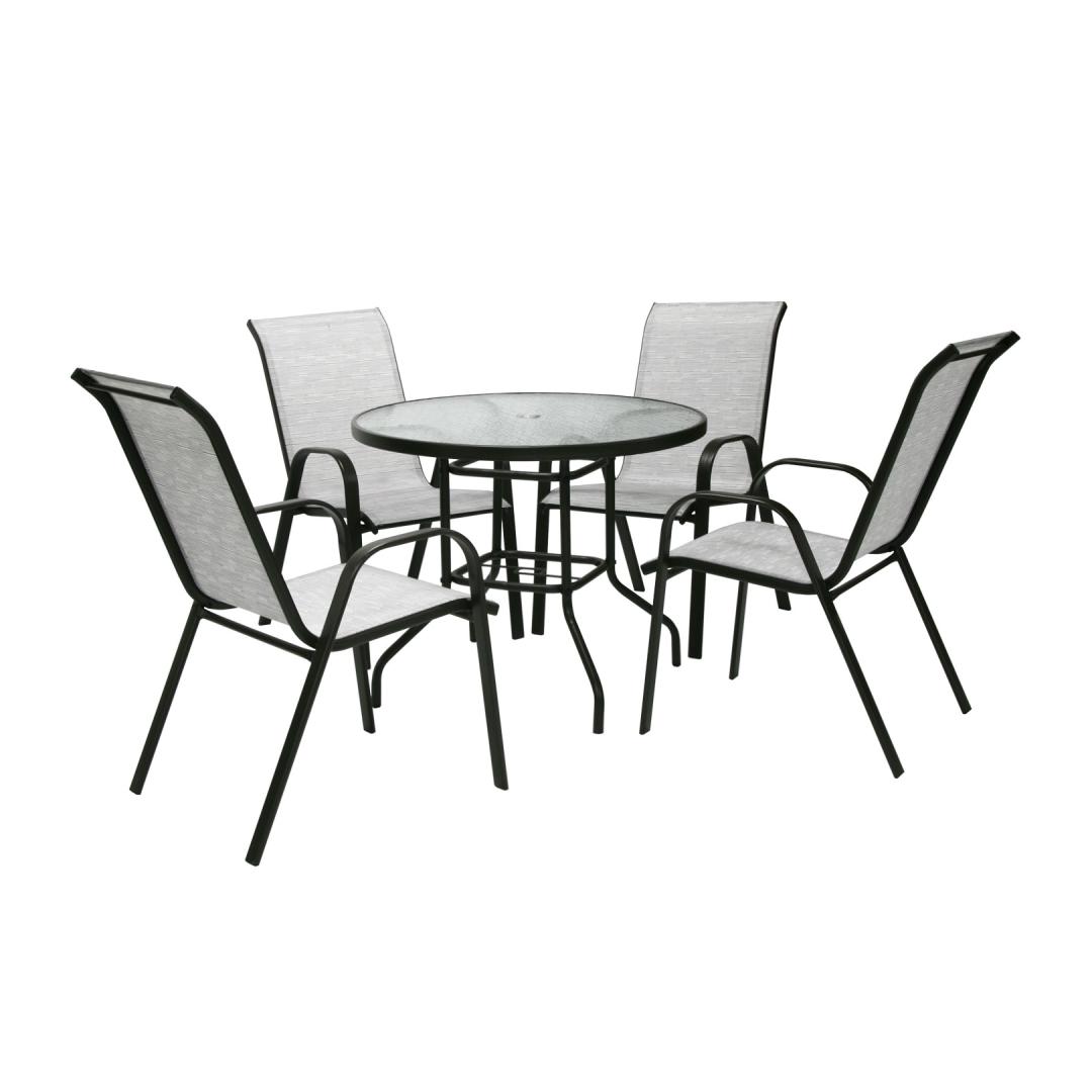 Aiamööblikomplekt DUBLIN laud ja 4 tooli, hõbehall.