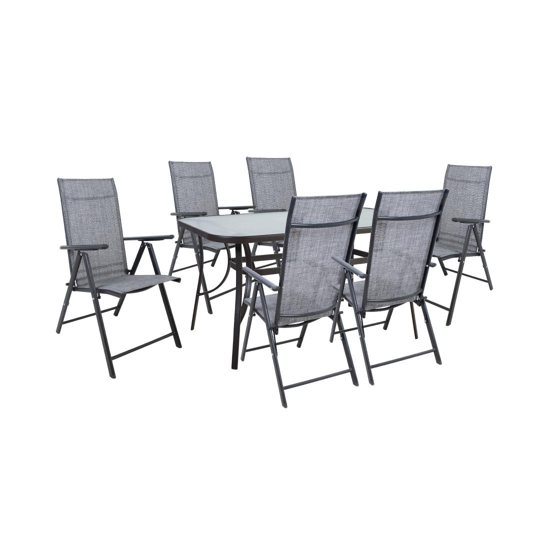 Aiamööblikomplekt DUBLIN laud ja 6 kokkupandavat tooli, hall