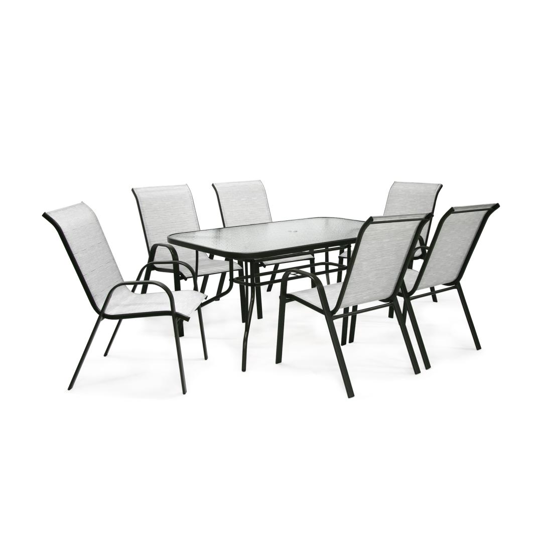 Aiamööblikomplekt DUBLIN laud ja 6 tooli, hõbehall.