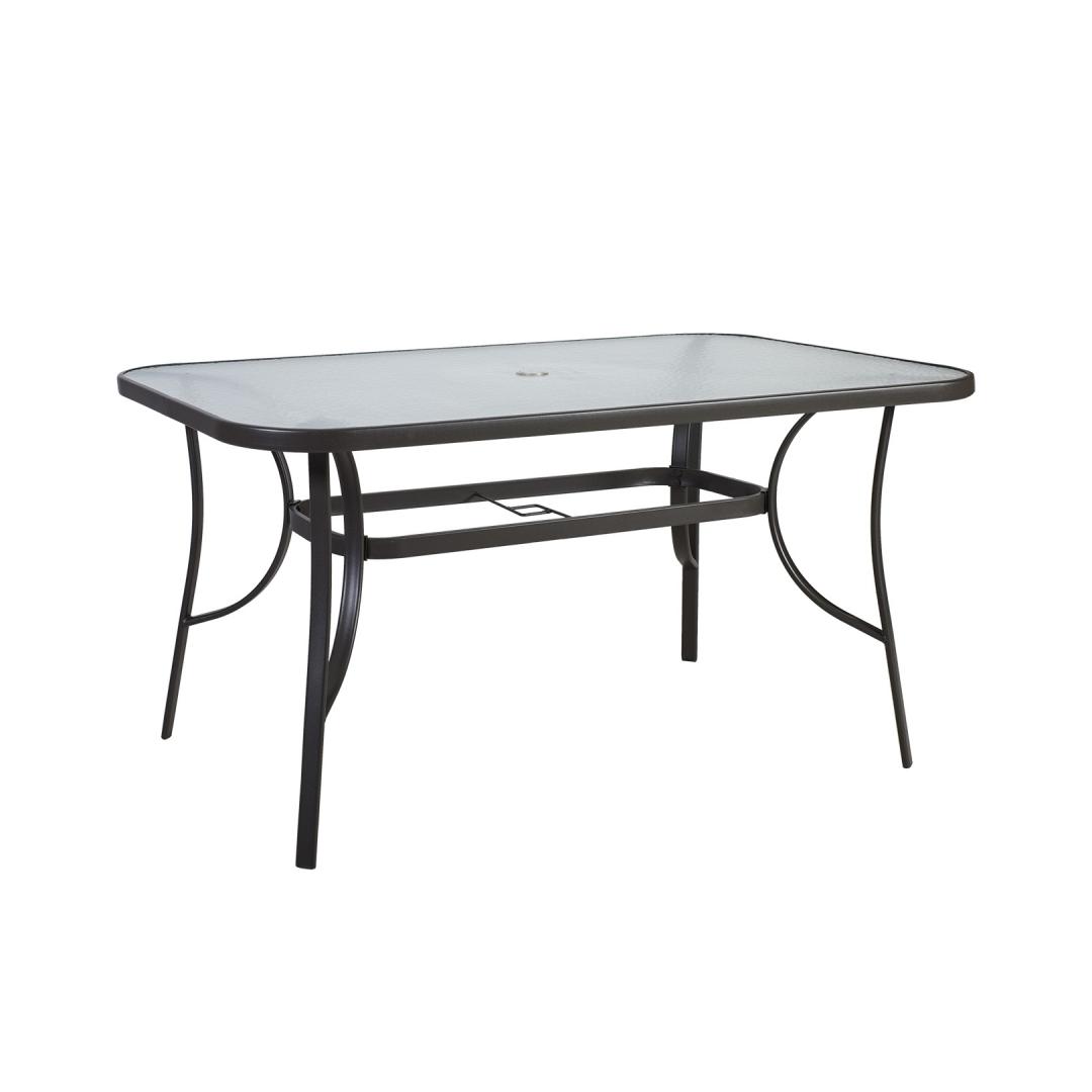 Laua mõõdud on 150x90xH70cm. Lauaplaat: 5mm läbipaistev laineline klaas.