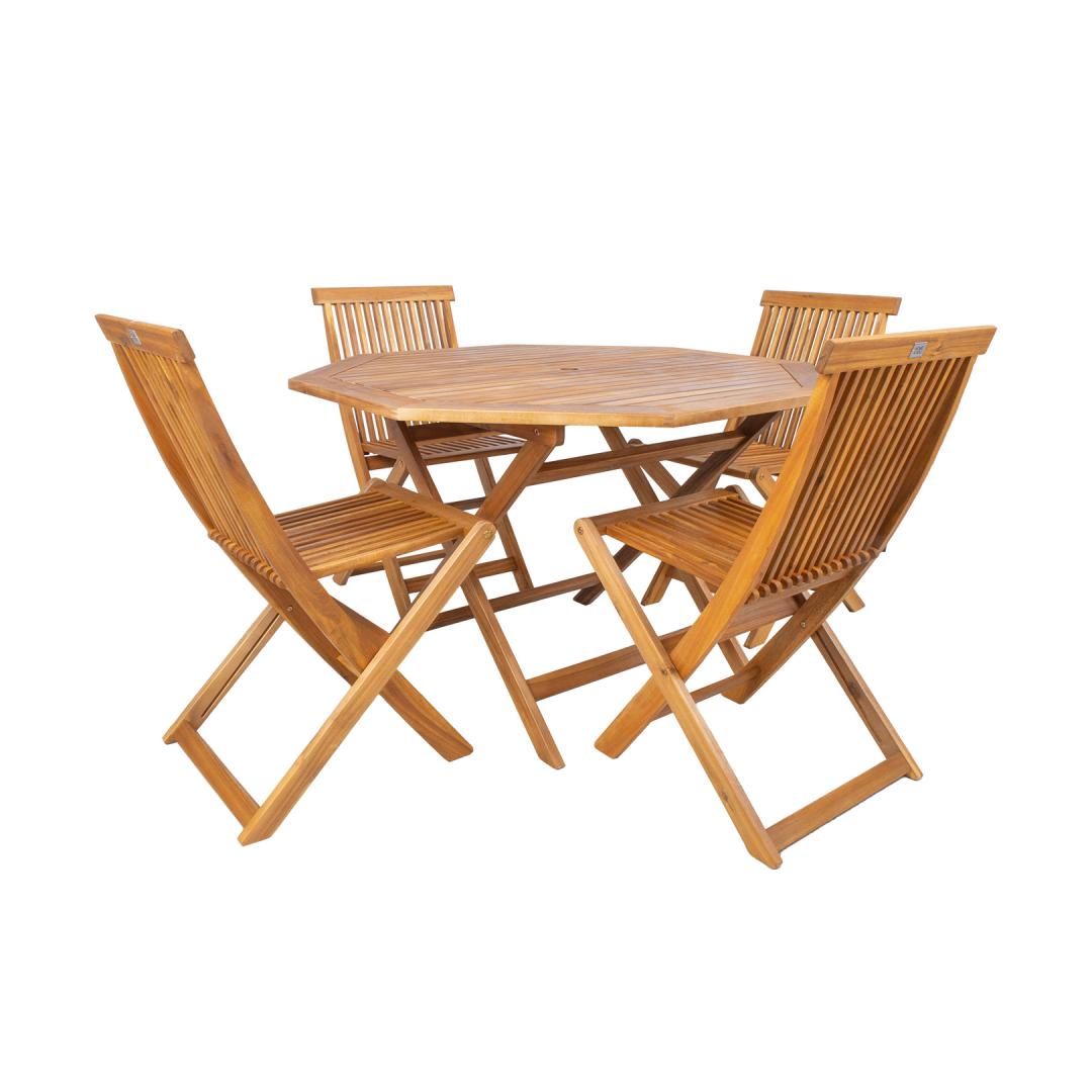Aiamööblikomplekt FINLAY laud ja 4 tooli, kokkupandav. Laud ja toolid on valmistatud akaatsiapuidust ja viimistletud puidukaitseõliga. Laua mõõdud on 120x120xH72cm. Tooli üldmõõdud on 45x57xH86cm, istme laius 36cm, istme sügavus 39cm, istme kõrgus 47cm, seljatoe kõrgus 46cm. Kaalupiirang 90kg. Toode on muutlikes ilmastikuoludes vastupidav. HOOLDUS: puit on elav looduslik materjal, mille välisilme ilmastikutingimuste tõttu muutub. Puhastage mööblit regulaarselt, kaitske liigniiskuse ja UV kiirguse eest. Kerge lihvimine ja uus õlikiht vähemalt korra aastas on piisav värskenduskuur mööblile uue näo andmiseks. HOIUSTAMINE: suvehooaja lõppedes soovitame aiamööblit hoiustada siseruumides. Puhastage ja kuivatage mööbel enne hoiule panekut. Kasutage hoiustamiseks kuiva ning hea ventilatsiooniga ruumi. Kaitske mööblit hoiustamise ajal otsese päikesevalguse eest. Aiamööblikomplekt FINLAY laud ja 4 tooli, kokkupandav. Laud ja toolid on valmistatud akaatsiapuidust ja viimistletud puidukaitseõliga. Laua mõõdud on 120x120xH72cm. Tooli üldmõõdud on 45x57xH86cm, istme laius 36cm, istme sügavus 39cm, istme kõrgus 47cm, seljatoe kõrgus 46cm. Kaalupiirang 90kg. Toode on muutlikes ilmastikuoludes vastupidav. HOOLDUS: puit on elav looduslik materjal, mille välisilme ilmastikutingimuste tõttu muutub. Puhastage mööblit regulaarselt, kaitske liigniiskuse ja UV kiirguse eest. Kerge lihvimine ja uus õlikiht vähemalt korra aastas on piisav värskenduskuur mööblile uue näo andmiseks. HOIUSTAMINE: suvehooaja lõppedes soovitame aiamööblit hoiustada siseruumides. Puhastage ja kuivatage mööbel enne hoiule panekut. Kasutage hoiustamiseks kuiva ning hea ventilatsiooniga ruumi. Kaitske mööblit hoiustamise ajal otsese päikesevalguse eest.