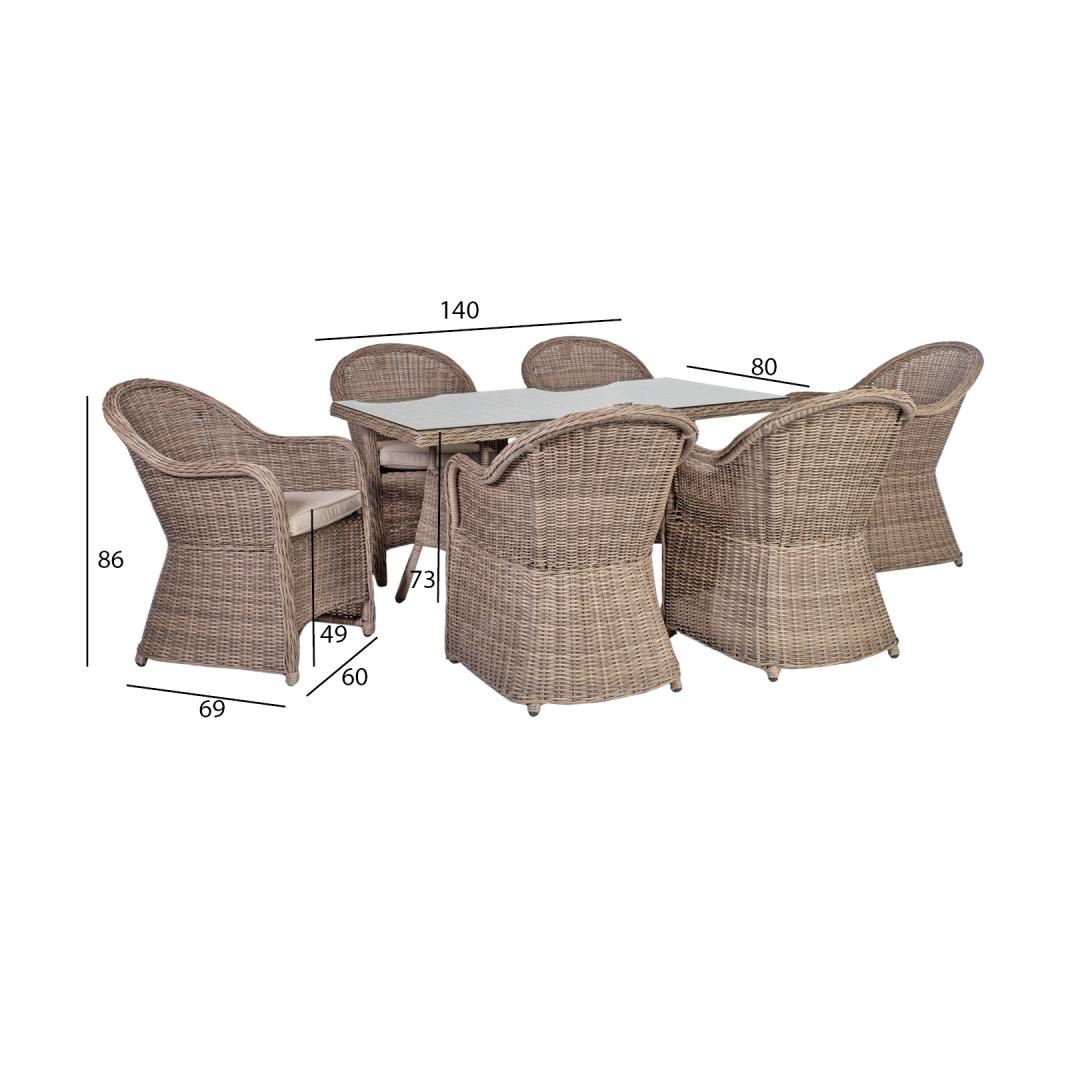 Aiamööblikomplekt TOSCANA laud ja 6 tooli.
