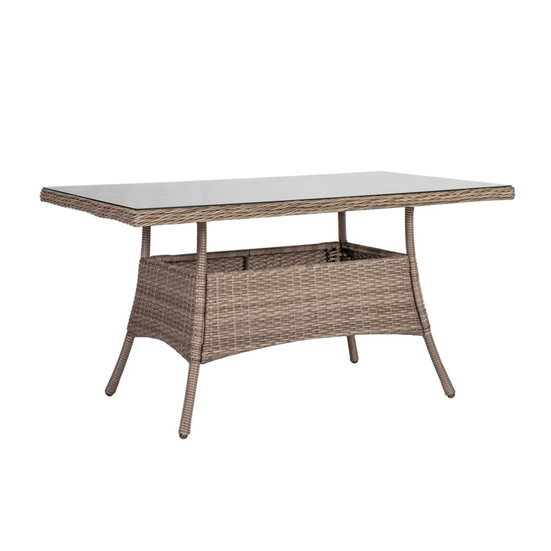 Laua ja toolide pulbervärvitud alumiiniumraamid on kaetud beeži plastikpunutisega.